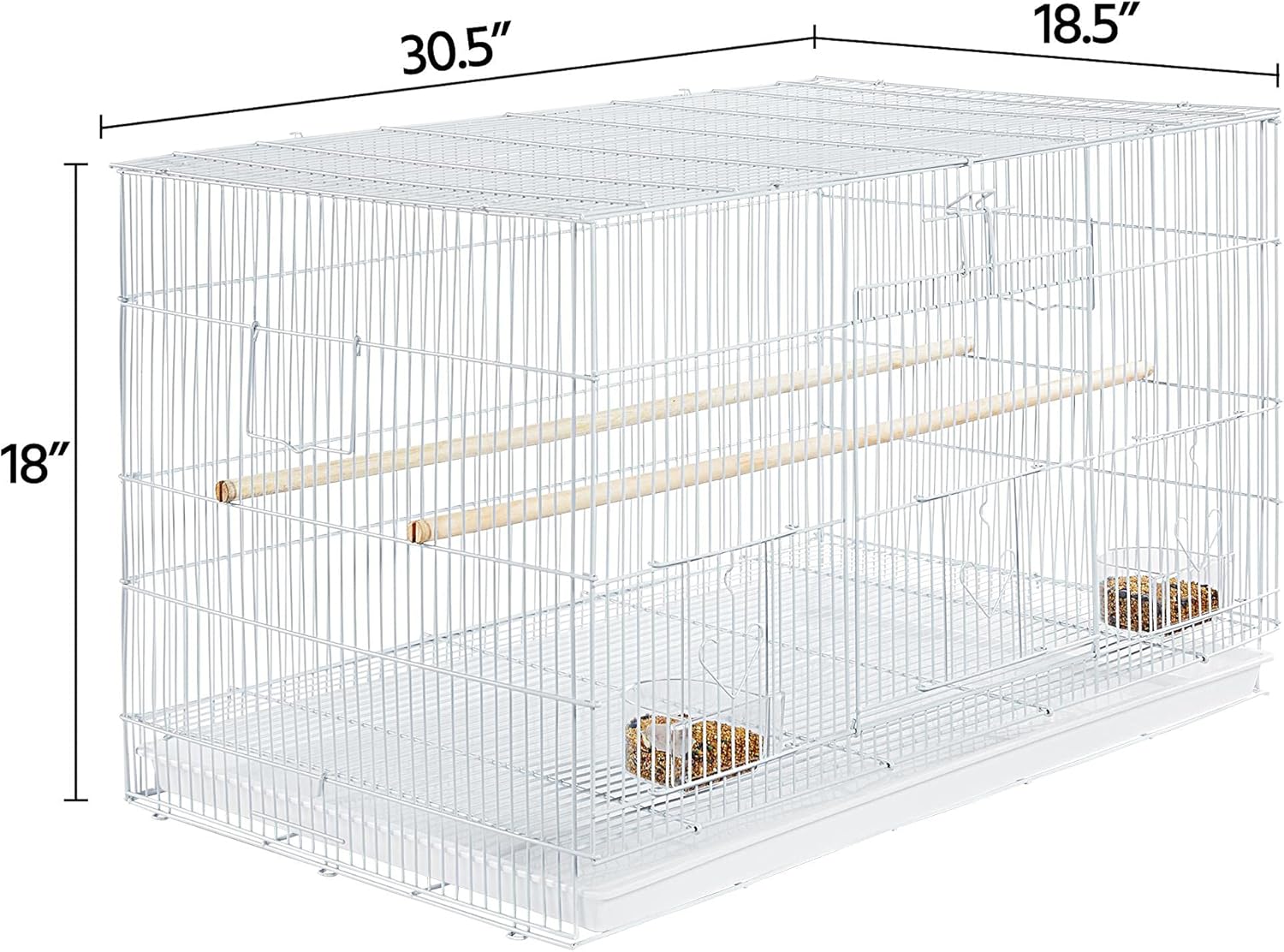 • Spacious Flight Cage: This generously-sized birdcage measures 30.5" L x 18.5" W x 18" H, which allows 3-4 small/medium pet birds to stretch wings and hop around cheerfully at the same time. Besides that, the roomy cage also has ample space for nests, perches, and swings