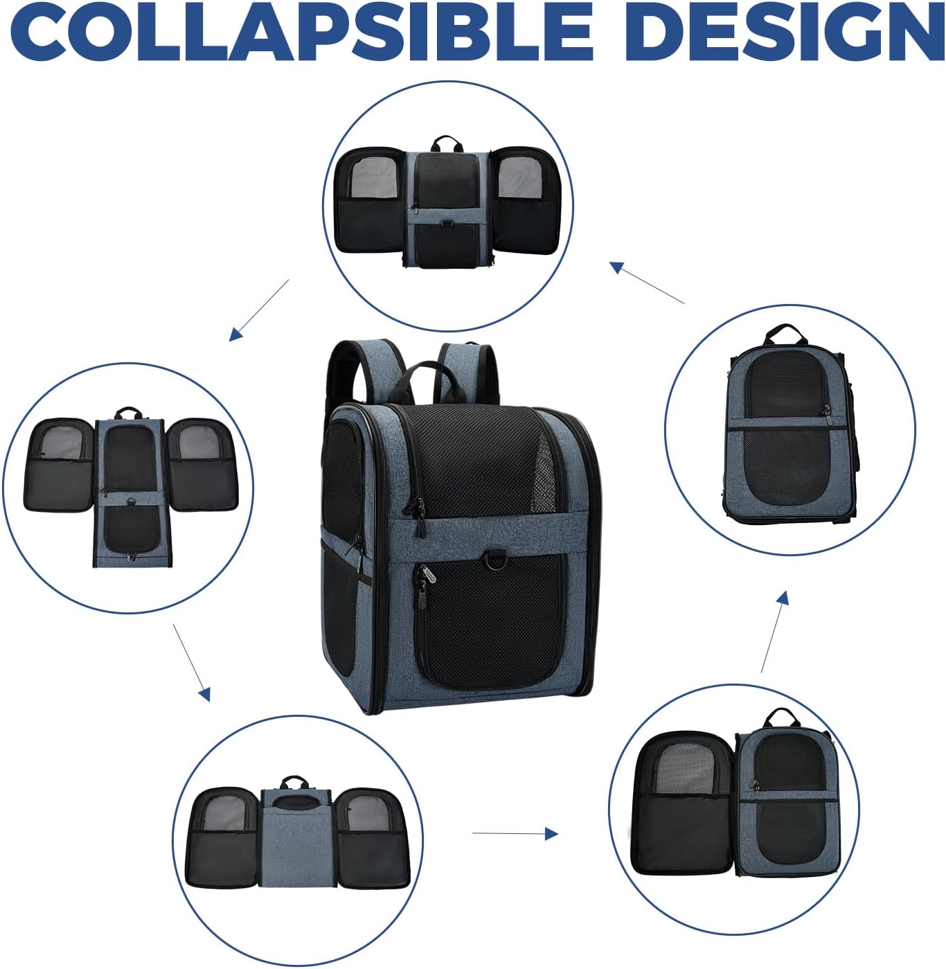 Apollo Walker Dog & Cat Carrier Backpack for 4-15lb Pets - Ventilated Safe Design with Padded Back Support, Breathable Mesh Pet Backpack for Hiking, Travel, Outdoor (Navy)