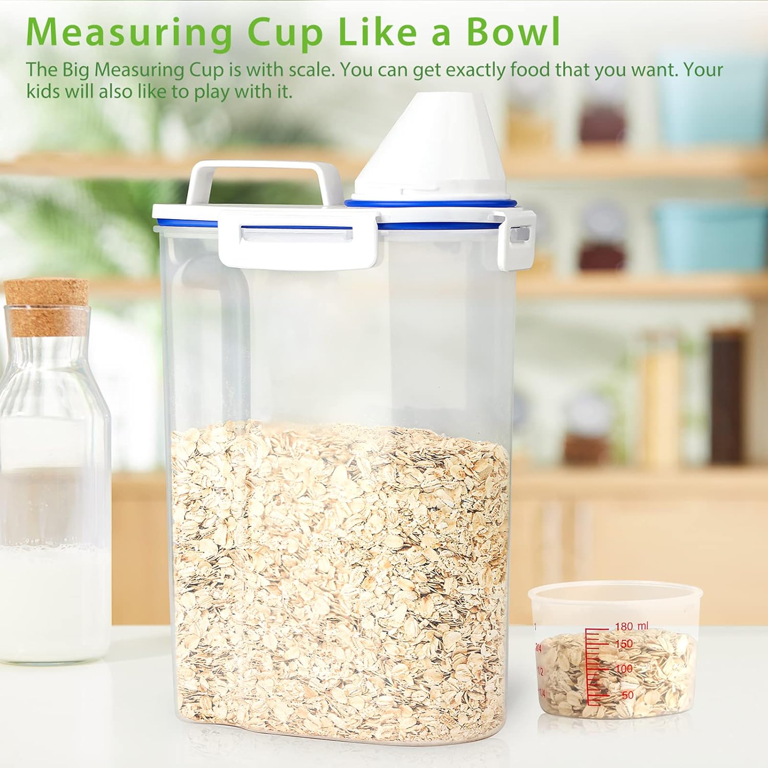 • RICE DISPENSER with POURABLE SPOUT: the standard scale and the measuring cup of this rice holder can help you pour things quickly and accurately every time. Our measuring cup has been upgraded and improved to be more stable and not easy to pops off