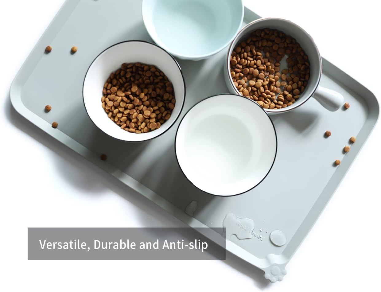 • Extra High raised outer lip prevents food, water and treats from spilling onto your clean floors! Please refer to measurements for size.No more messy spills on floor again.