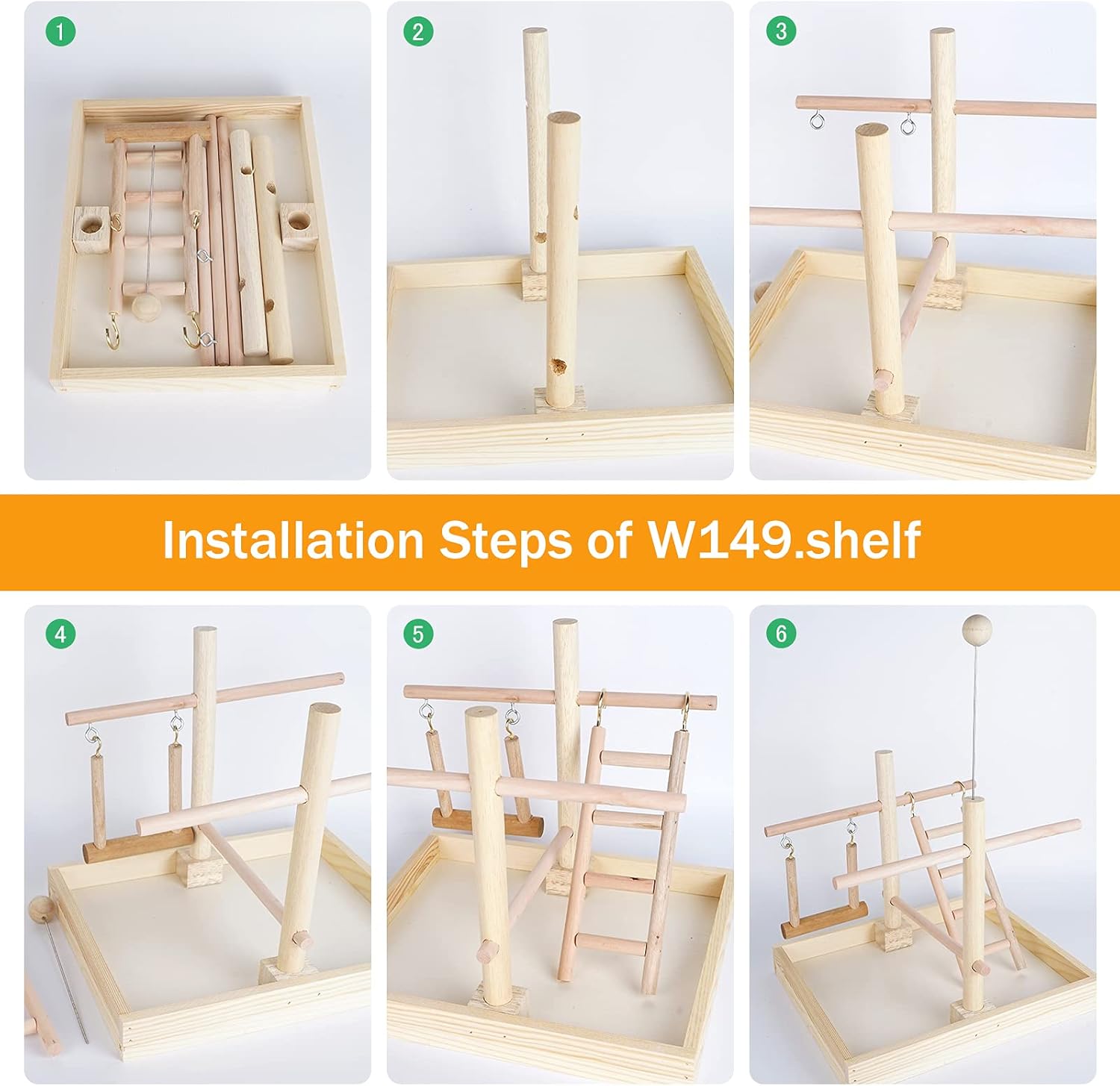 • 【Easy to clean】Wood stand smooth surface. Large tray at bottom of perch can catches food and seeds make clean up quick and easy. NOTE : You will receive the product parts, please assemble the bird stand by yourself.