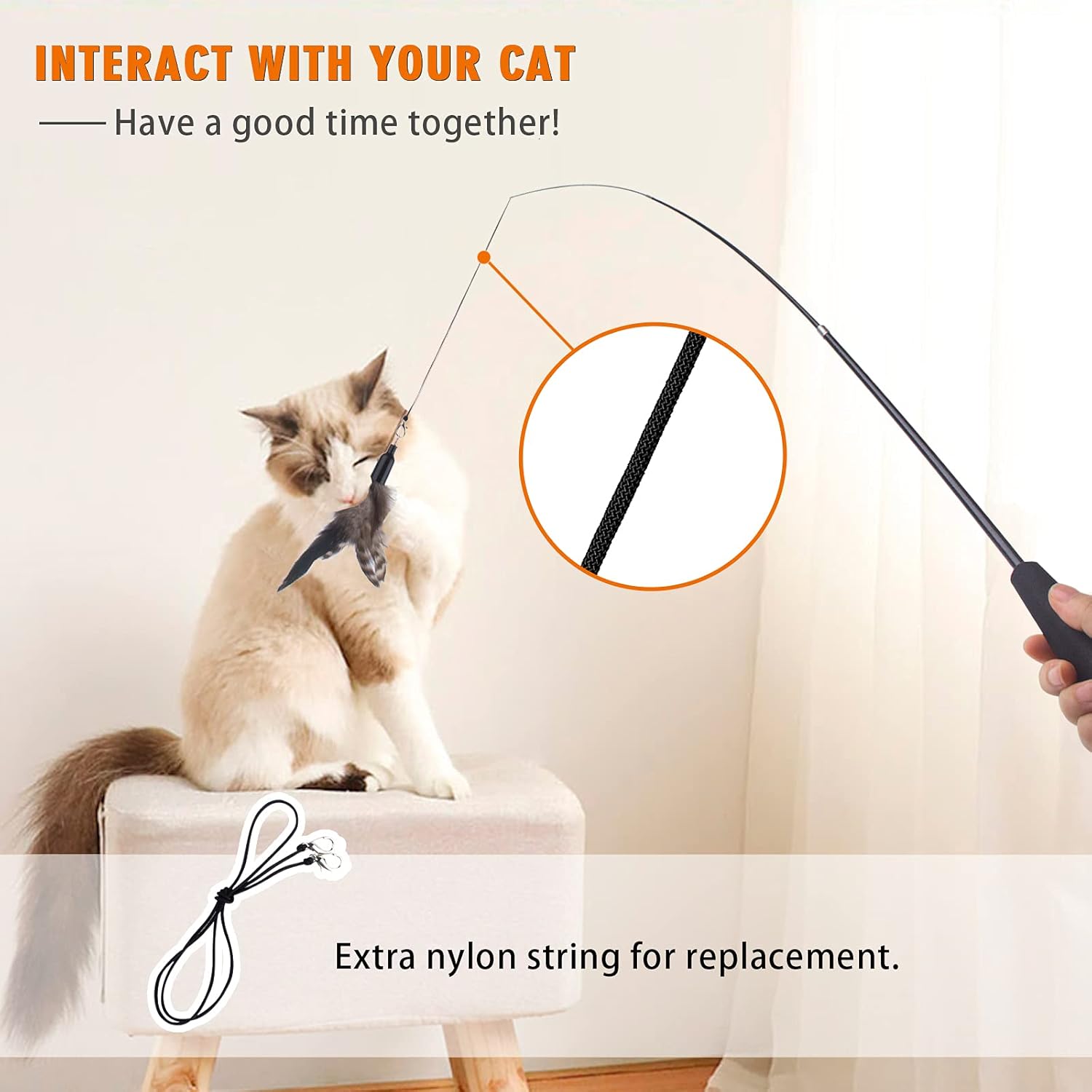 • 【HIGH QUALITY MATERIAL】Natural feather teaser, non-toxic and odorless. Worm and tail, soft and comfortable. The elasticity fishing pole is durable and flexible. These cat chew toys are suitable for the cat to play. All pet cat toys can be washed.