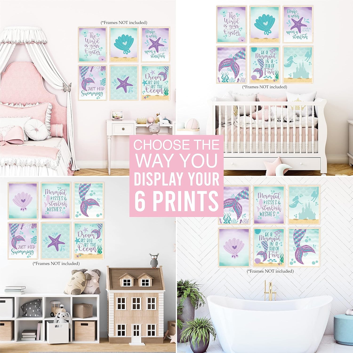 • Bring Any Room To Life; Use this mermaid room decor for girls bedroom to complete a nursery, bedroom, playroom, or even a birthday party; These girls wall decor prints are great to use as kids room wall decor, mermaid birthday decorations, or mermaid party supplies.