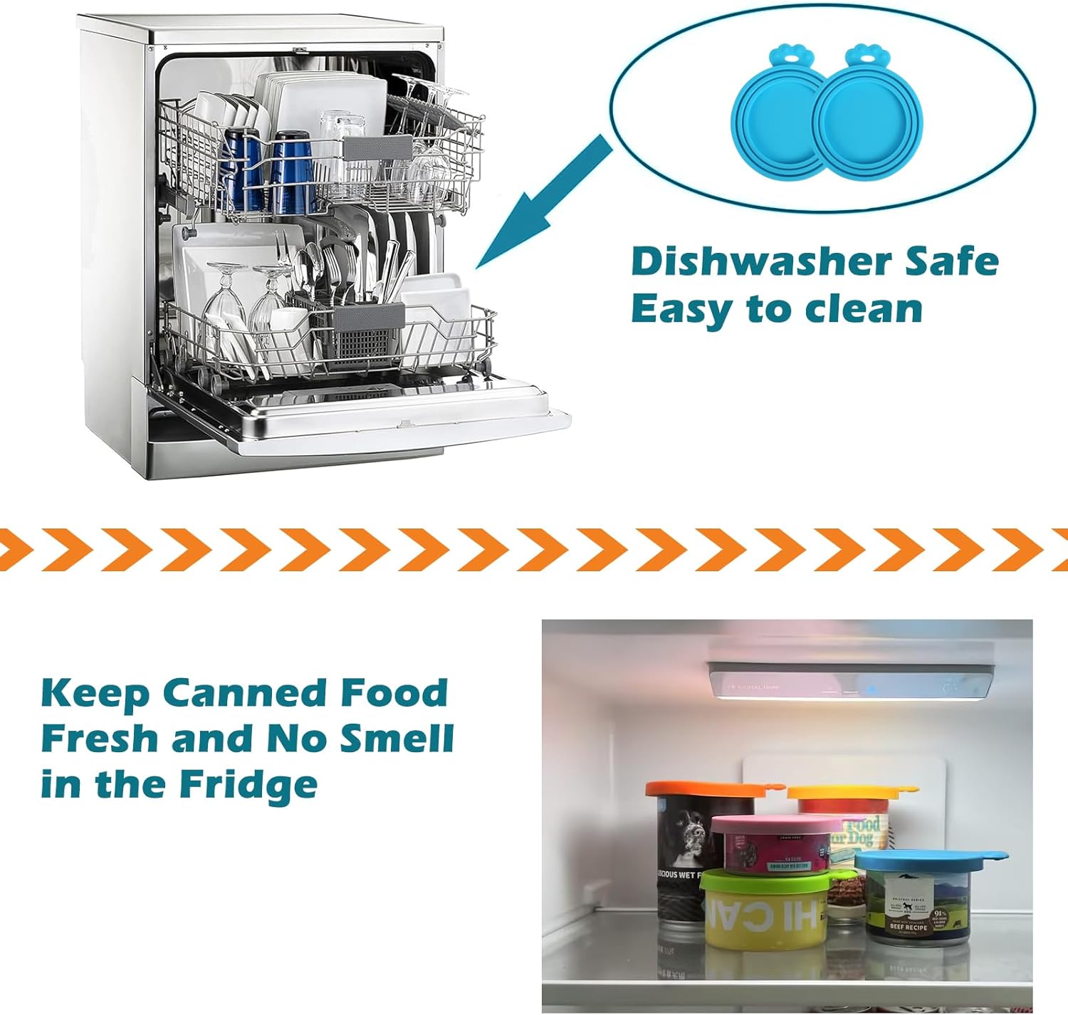 • Safe and Nontoxic: These can lids for dog food are made of 100% Premium Silicone at food grade, durable, safe and nontoxic, could restore with food long time with no harm, dishwasher safe