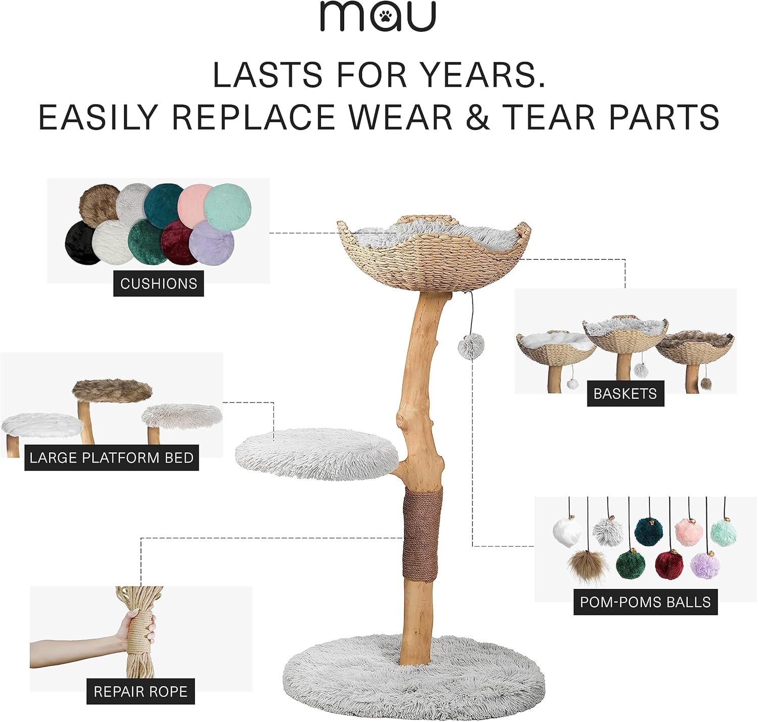 - MADE TO LAST & ENDLESS SUPPORT: These trees are extremely high quality and made to last for years to come. Youโll always be able to keep your cat tree looking new because replacement parts can be purchased for ANY part on the tree. If you ever have any sort of issues with your tree, our team of cat lovers are ready to assist you. Your satisfaction is extremely important and we are here to make sure that you and your kitty have the best experience possible with Mau!