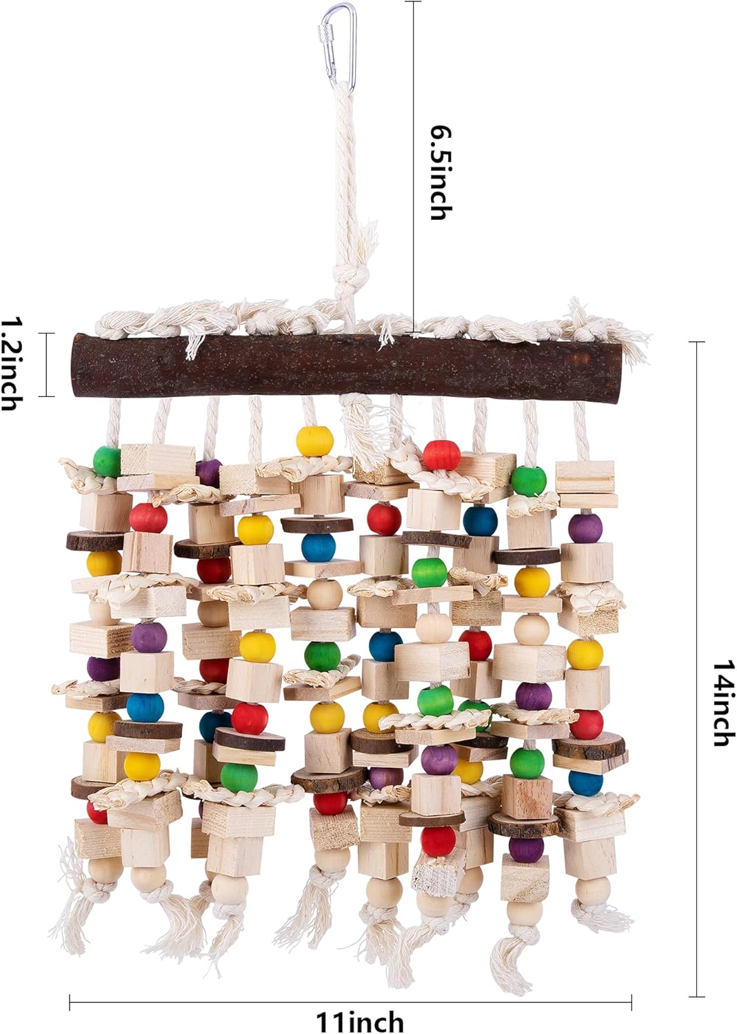 • Unique design: This big parrot toys has several distinctive shapes blocks and multicolor wooden beads with vibrant colors which connected with the metal chain,and also multiple layers encourage parrot to climb and explore.