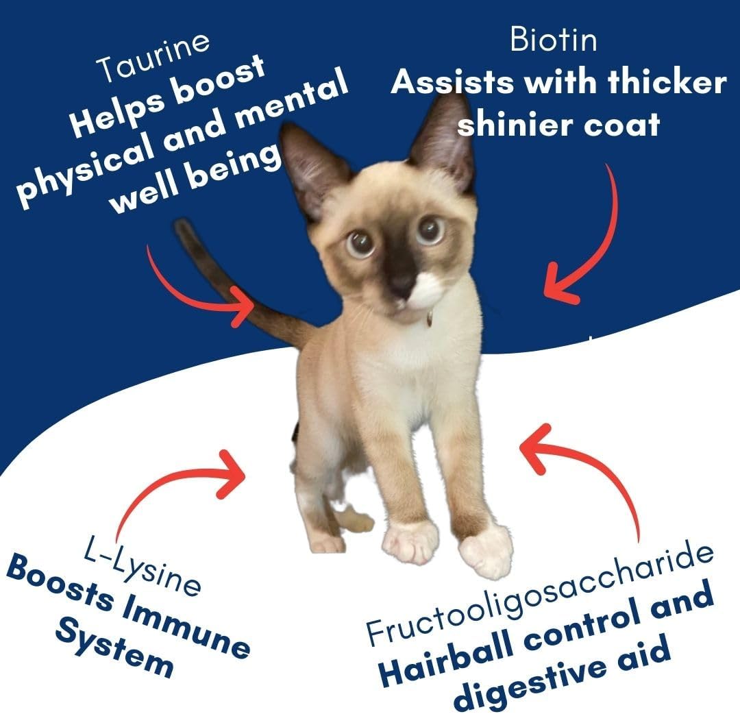 • NUTRITION MEETS FUNCTION: We not only show all of our ingredients, but we display how much as well! Our cat snacks are grain free, contain no added sodium, artificial additives, fillers, flavors, or colors. We believe in full ingredient transparency! We set out to create cat squeeze up treats that contain Biotin for coat shine, L-Lysine for a better immune system, FOS for gut & digestive health to prevent hairballs, & Taurine for physical/mental well being!