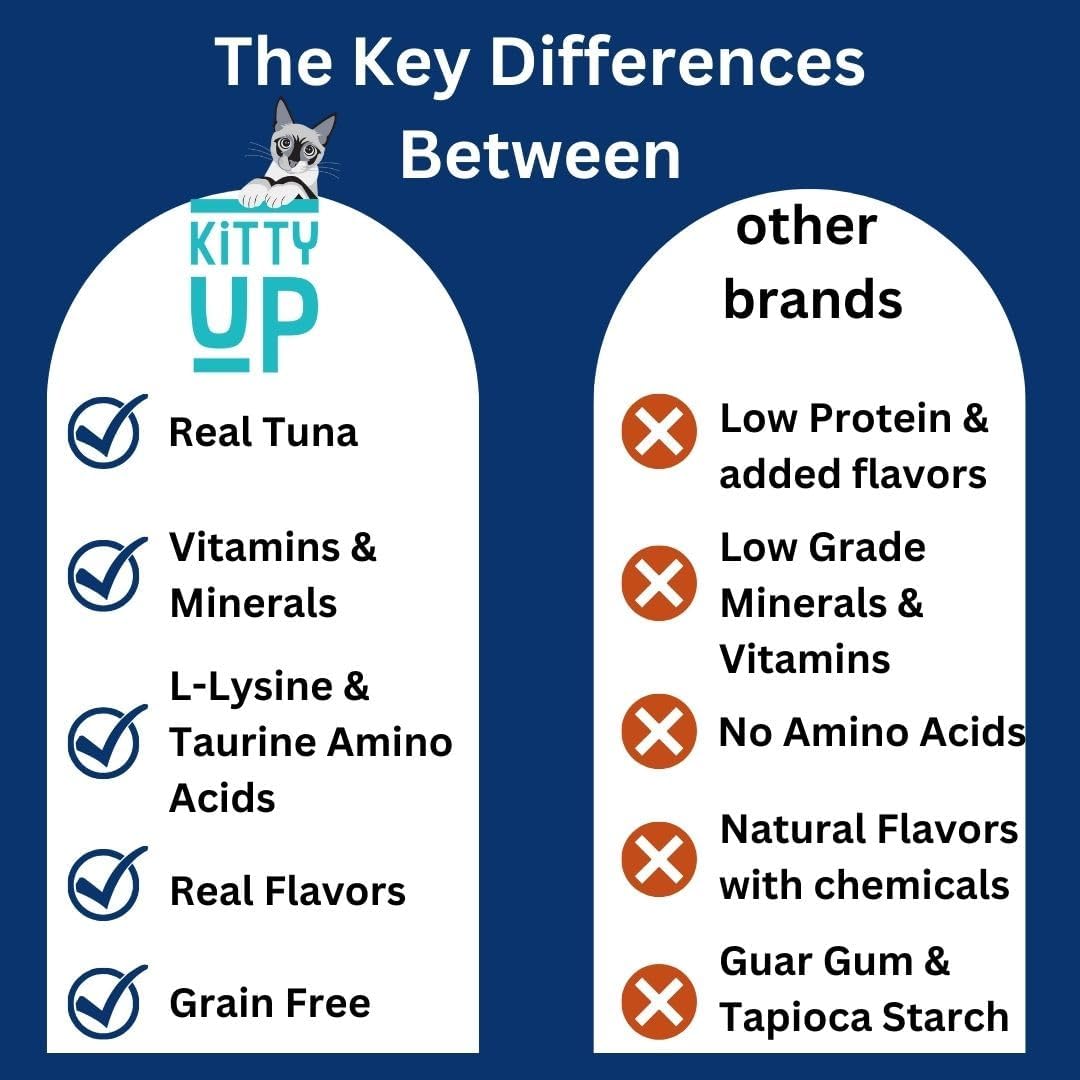• EASY, TESTED, & SAFE: The ingredients were carefully selected to create an essential cat puree that has undergone stringent quality inspection and hours of development with leading animal nutritionists! Kitty Up soft cat treats are crafted to the highest standards! With your cat in mind, we believe we are building better food for our pets to live happier lives.