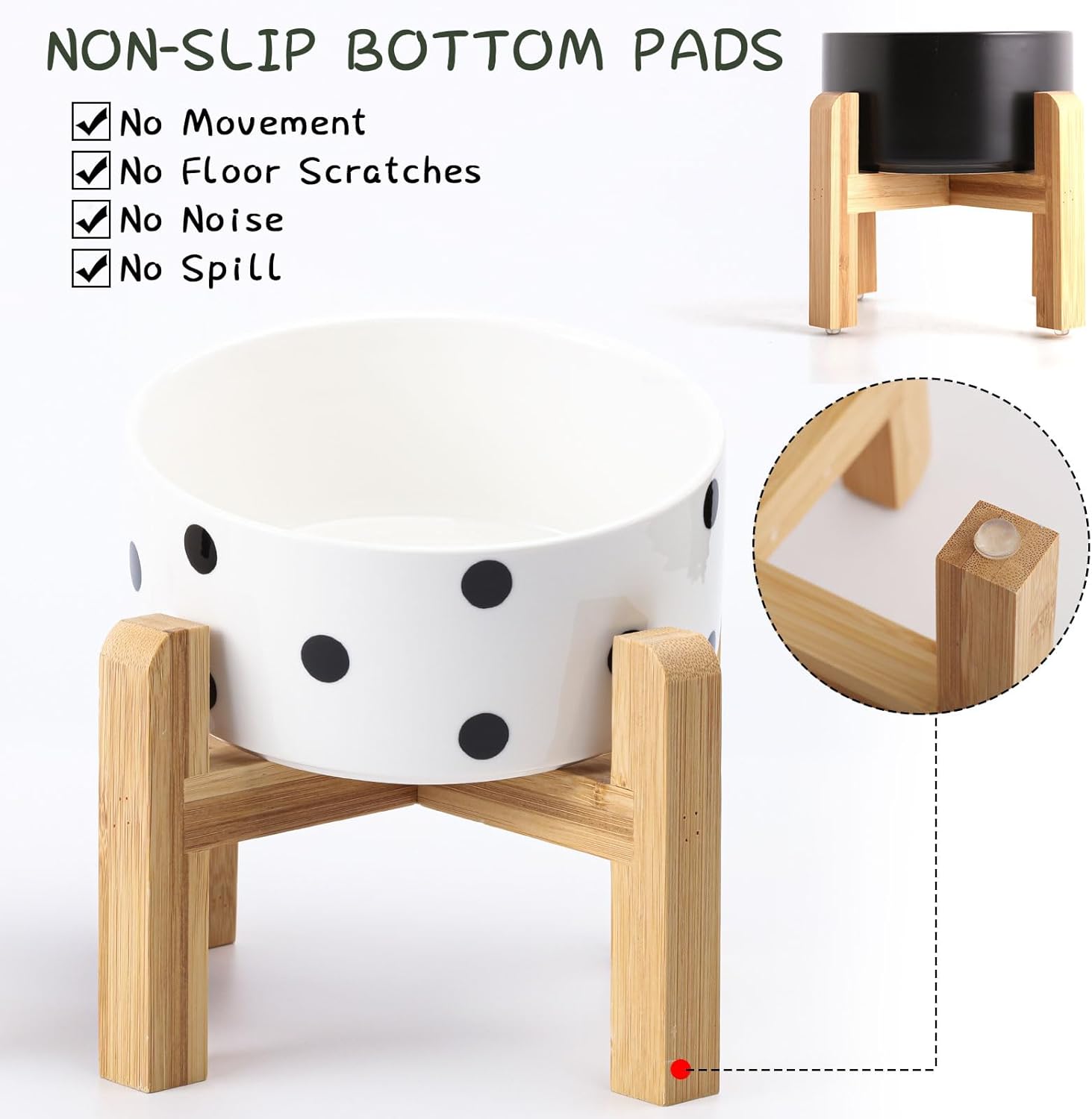 Petygooing 28 OZ Elevated/Raised Ceramic Dog Bowl for Small Medium Breeds, Dog Food Water Dish with Stand,Pet Bowl with Anti Slip Rubber for Cats Small and Medium Dogs (3.6 Cups) Black Dot