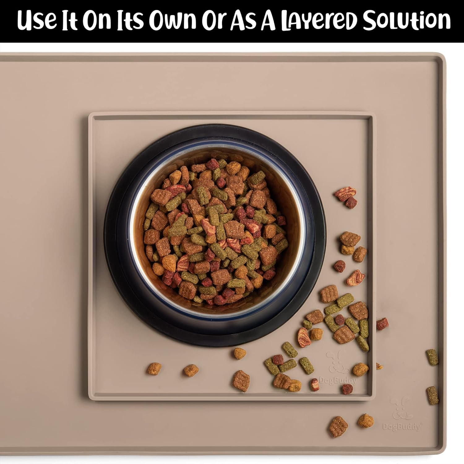 DogBuddy Dog Food Mat – Waterproof Dog Bowl Mat for Food and Water, Silicone Pet Feeding Mats for Floors, Non-Slip Placemat with High Edges for Dogs Bowls, Puppy Essentials (XS: 11" x 11", Taupe)