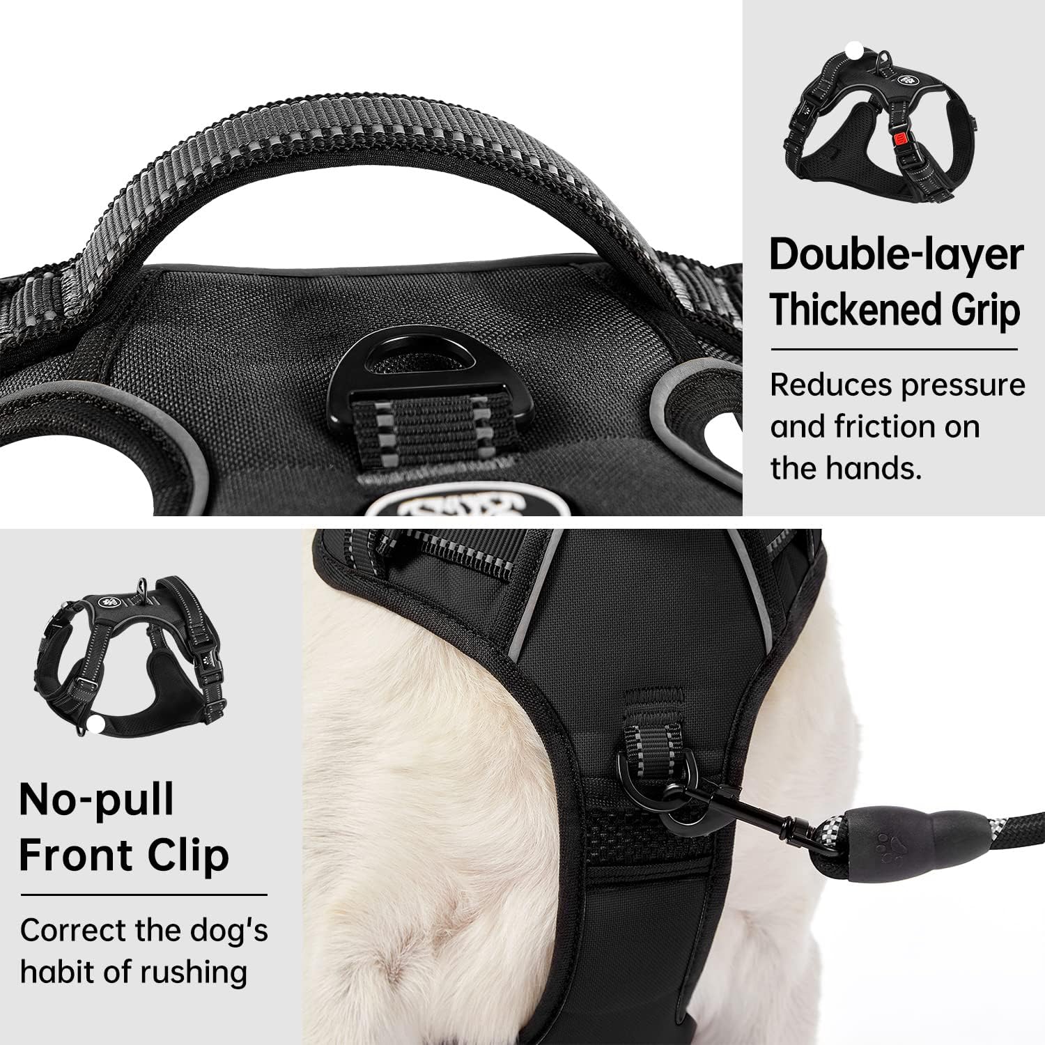 IVY&LANE No Pull Dog Harness for Large Dogs, Dog Vest Harness with Leash, Safety Belt and Storage Strap, Fully Adjustable Harness, 360° Reflective Strip, Soft Handle (Black, XL)