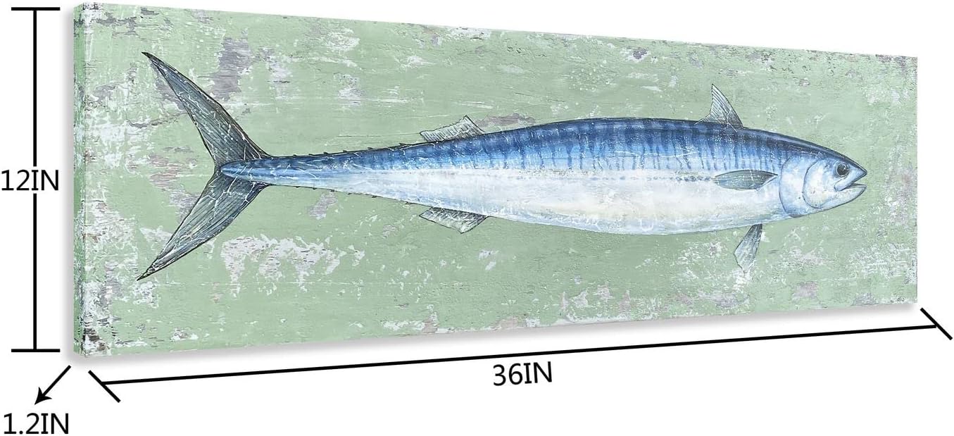Yihui Arts Tuna Canvas Wall Art - Fish Oil Paintings with Textured – Abstract Coastal Pictures for Living Room Bedroom Bathroom Decor