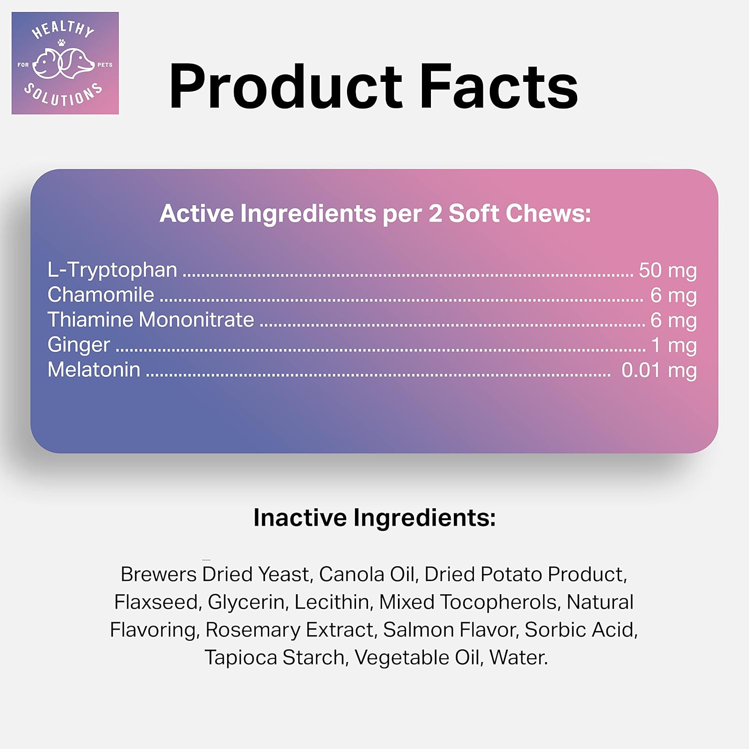 • ๐Ÿ—ธ VETERINARIAN FORMULATED -- with Melatonin, Chamomile, Passion Flower, Thiamine, L-Tryptophan, and Ginger to help soothe sensitive stomaches.