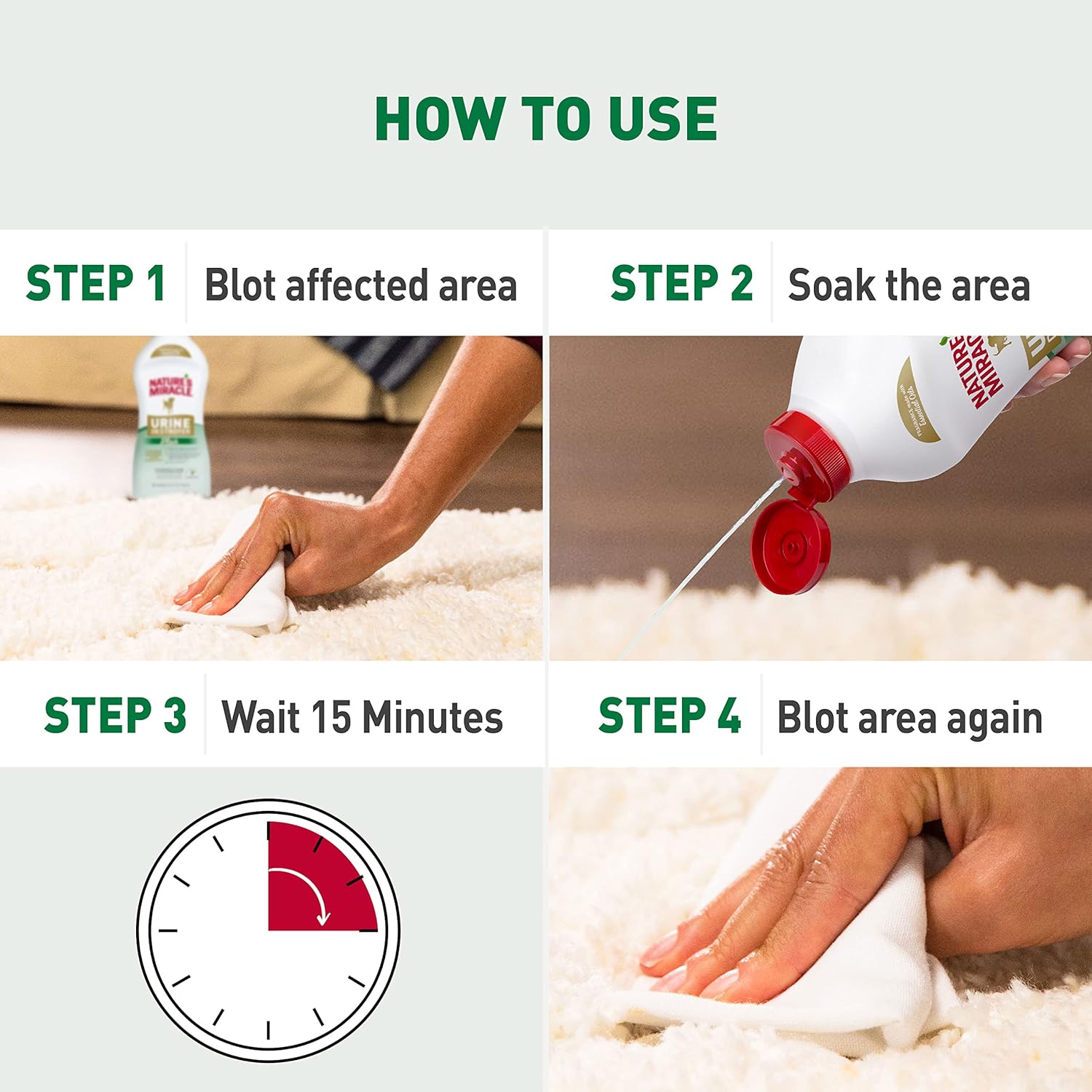 • FOR DOG URINE MESSES: Begins to break down and remove stains immediately on contact.