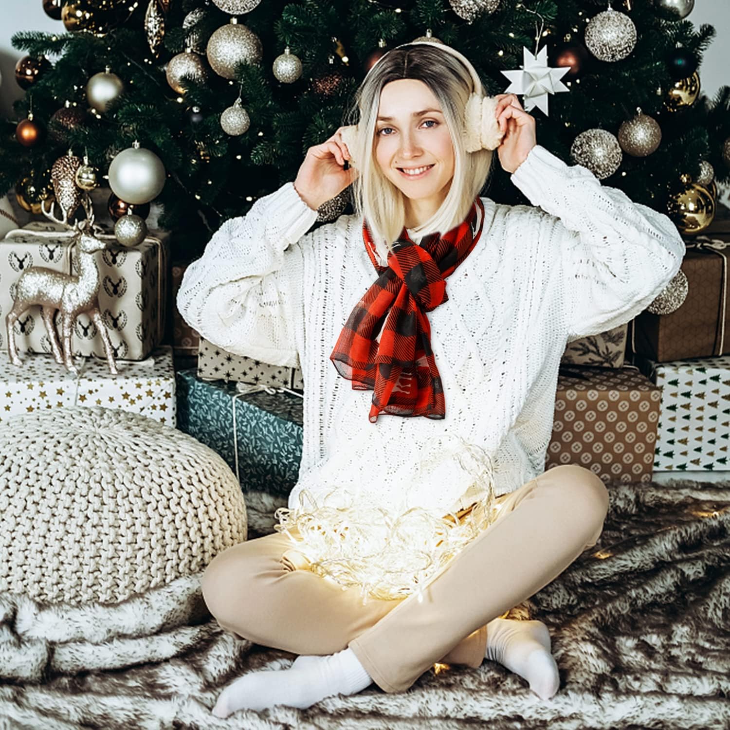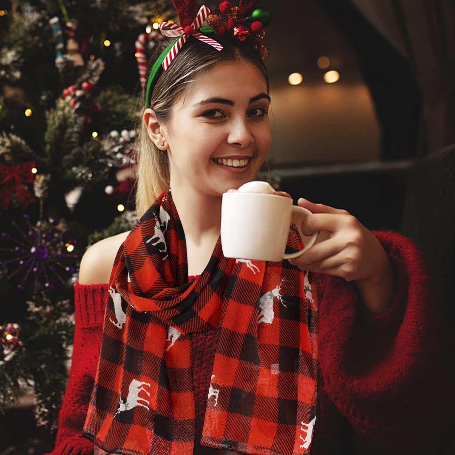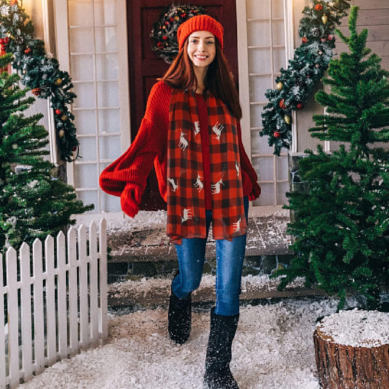 • Unique style: Christmas scarfs for women dressy with classic red and black plaid, vintage and fashionable. The design of cute elks pattern make christmas themed scarfs simple and versatile, and add appeal and glamour for your wear.