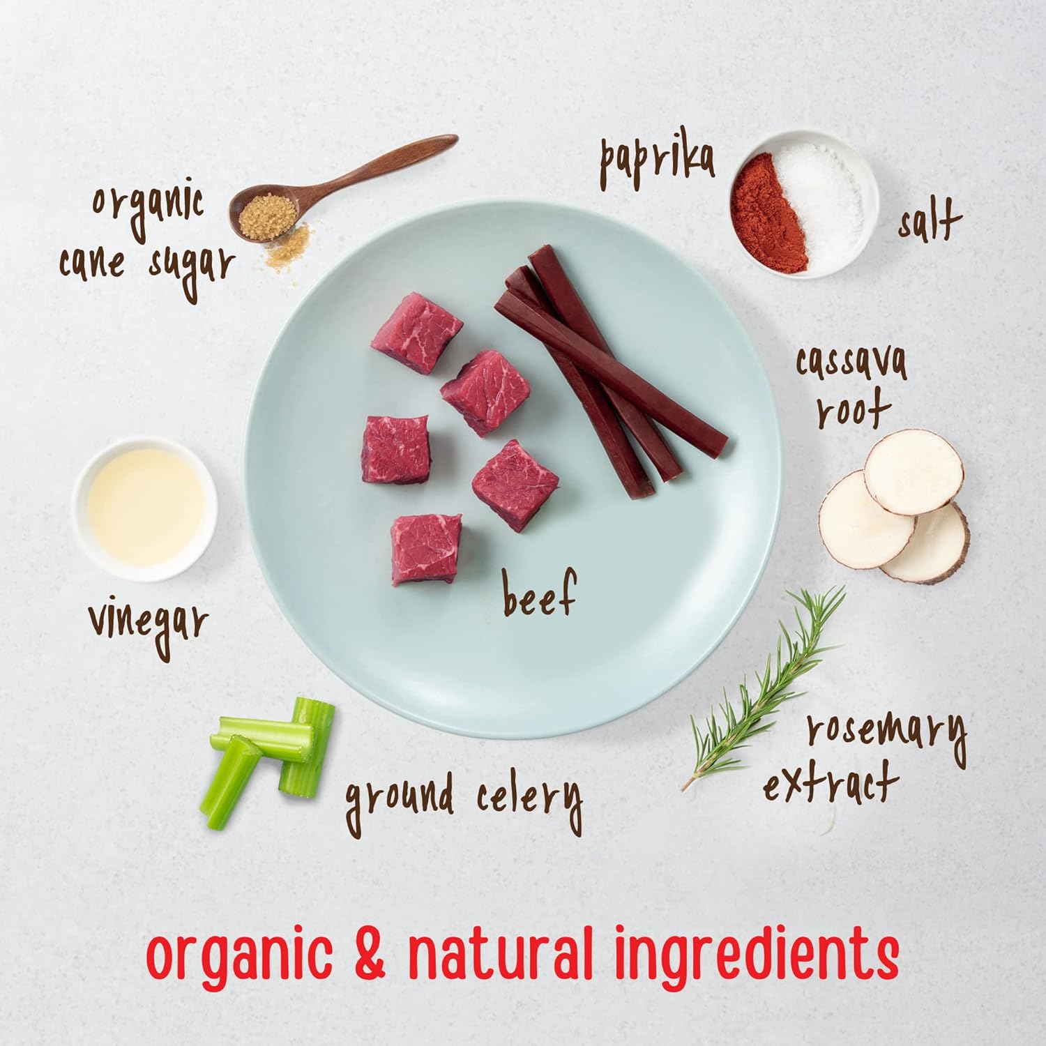 • HIGH QUALITY INGREDIENTS: Truth is our first ingredient; We carefully cook our natural Essential Beef Savory Sticks in small batches using honest ingredients like free range beef, cassava root, ground celery, and rosemary extract—never any by-products or waste