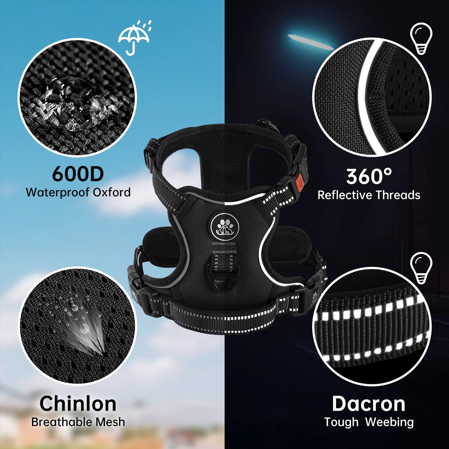 • 【EASY ADJUSTMENT】This no choke dog harness design with 4 fully adjustable straps (2 shoulder and 2 chest straps) which can be adjusted to the most fitting size, prevents the dog from breaking free while maintaining maximum comfort
