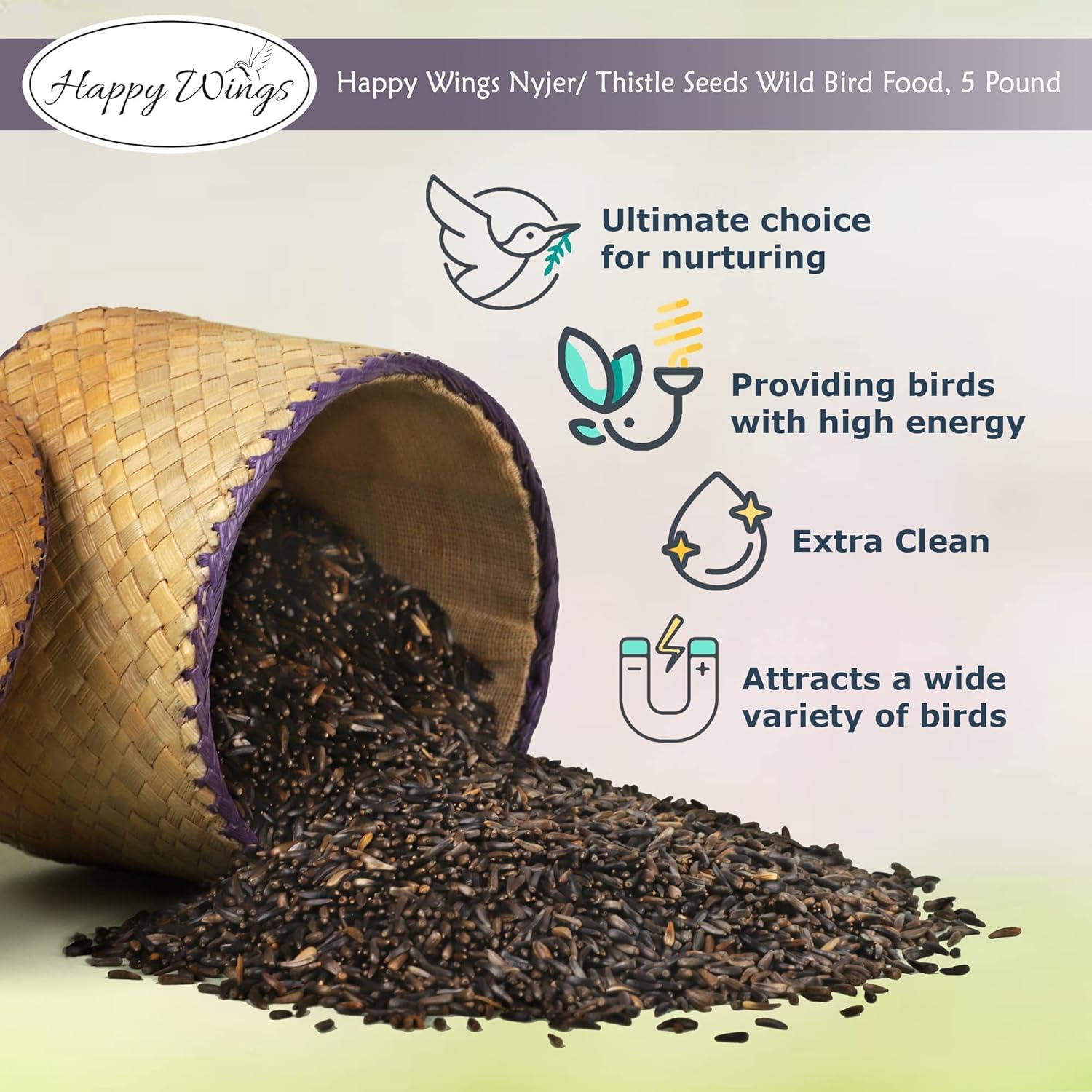 Nyjer/Thistle Seeds with Empty Sock for Wild Bird Food - 5 Pounds I No Grow Seed