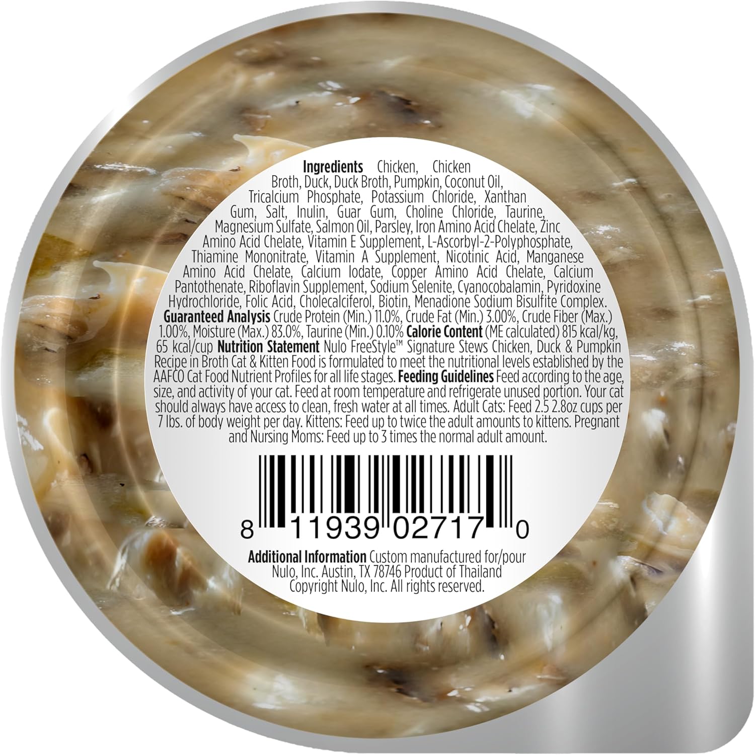 • CHICKEN, DUCK, & PUMPKIN RECIPE - Nulo Freestyle Cat & Kitten Wet Cat food Signature Stew helps your cat or kitten thrive with a completely balanced recipe containing no added minerals or preservatives. Pack of 24, 2.8 Oz pouch.