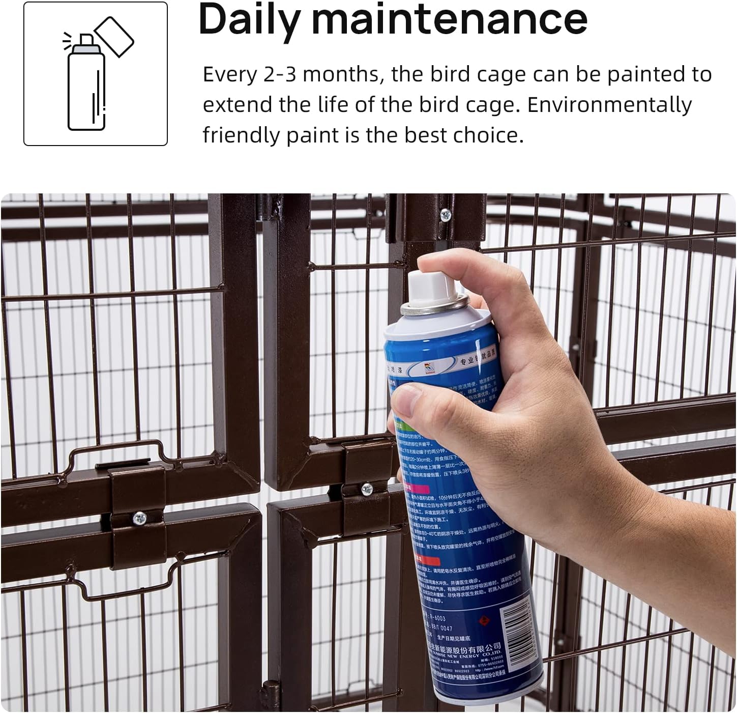 • Good Quality - Durable iron frame construction features excellent shock, rust, corrosion, tarnish resistance, which prolongs the service lifetime of the cage. Please do not expose the birdcage directly to rain. Otherwise it will rust easily. When it rains, please put on a birdcage cover or move indoors.