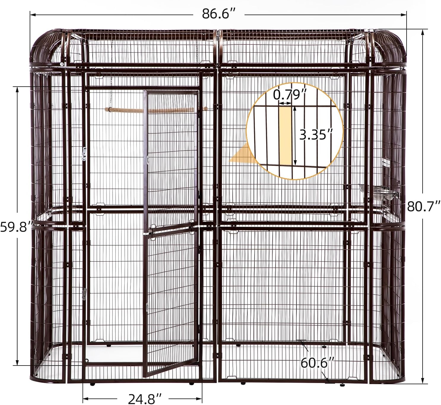 • Need to Assemble - The cage comes with three separate packages. Overall Size: 86.5โ€L x 60.5โ€W x 80.39โ€H;Door size: 59.8"H X 24.8"W