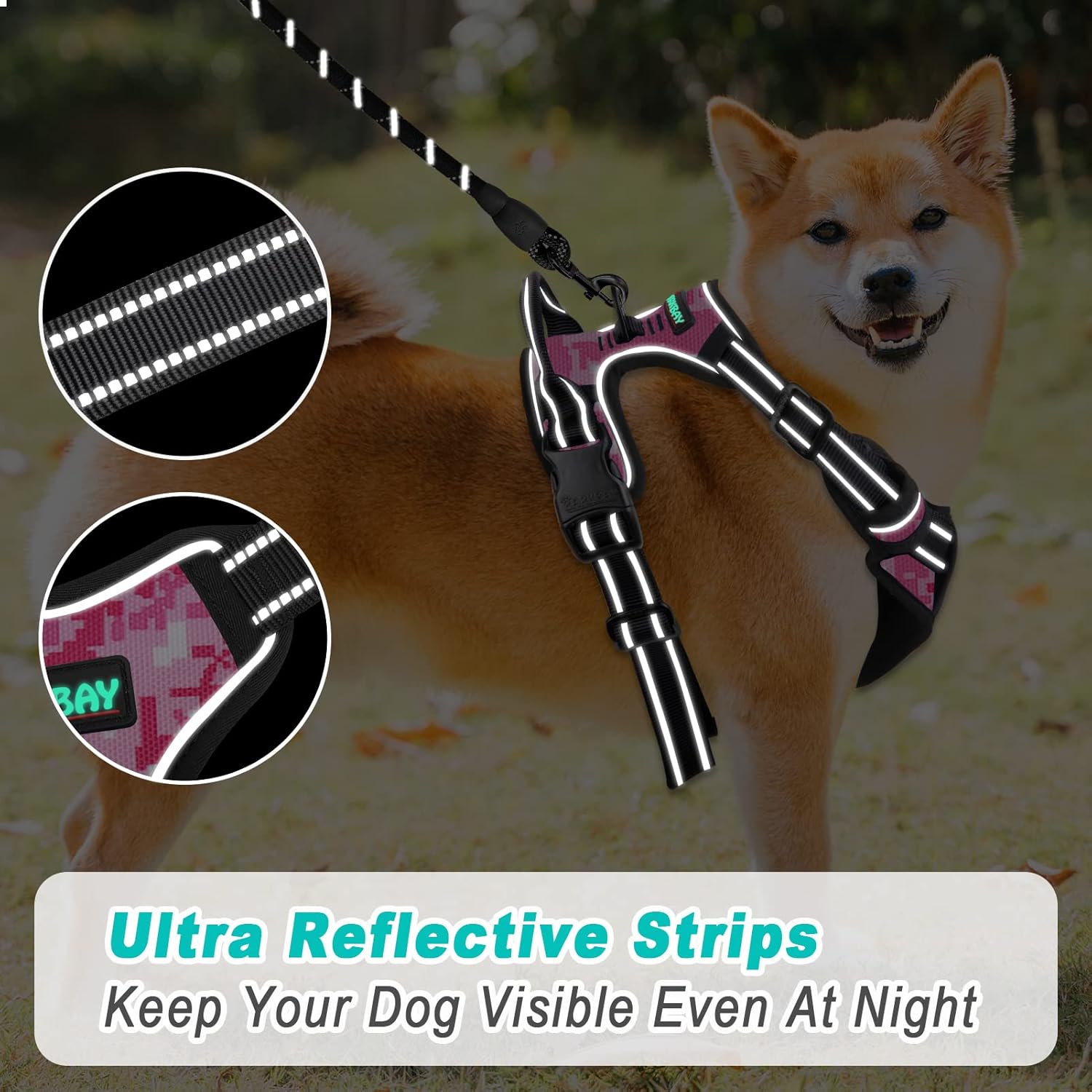 BARKBAY No Pull Dog Harness Large Step in Reflective Dog Harness with Front Clip and Easy Control Handle for Walking Training Running(Pink camo,S)