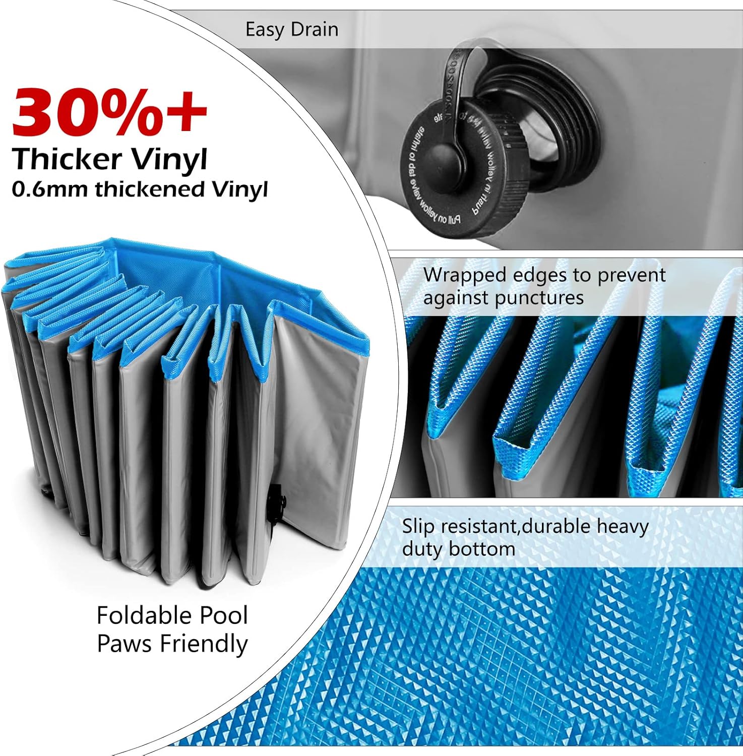 • Portable and Foldable Pool: easy to store and bring with you and your dog everywhere. It can be used as dog pool kiddie pool kids pool wading pool pet dog bath tub etc.