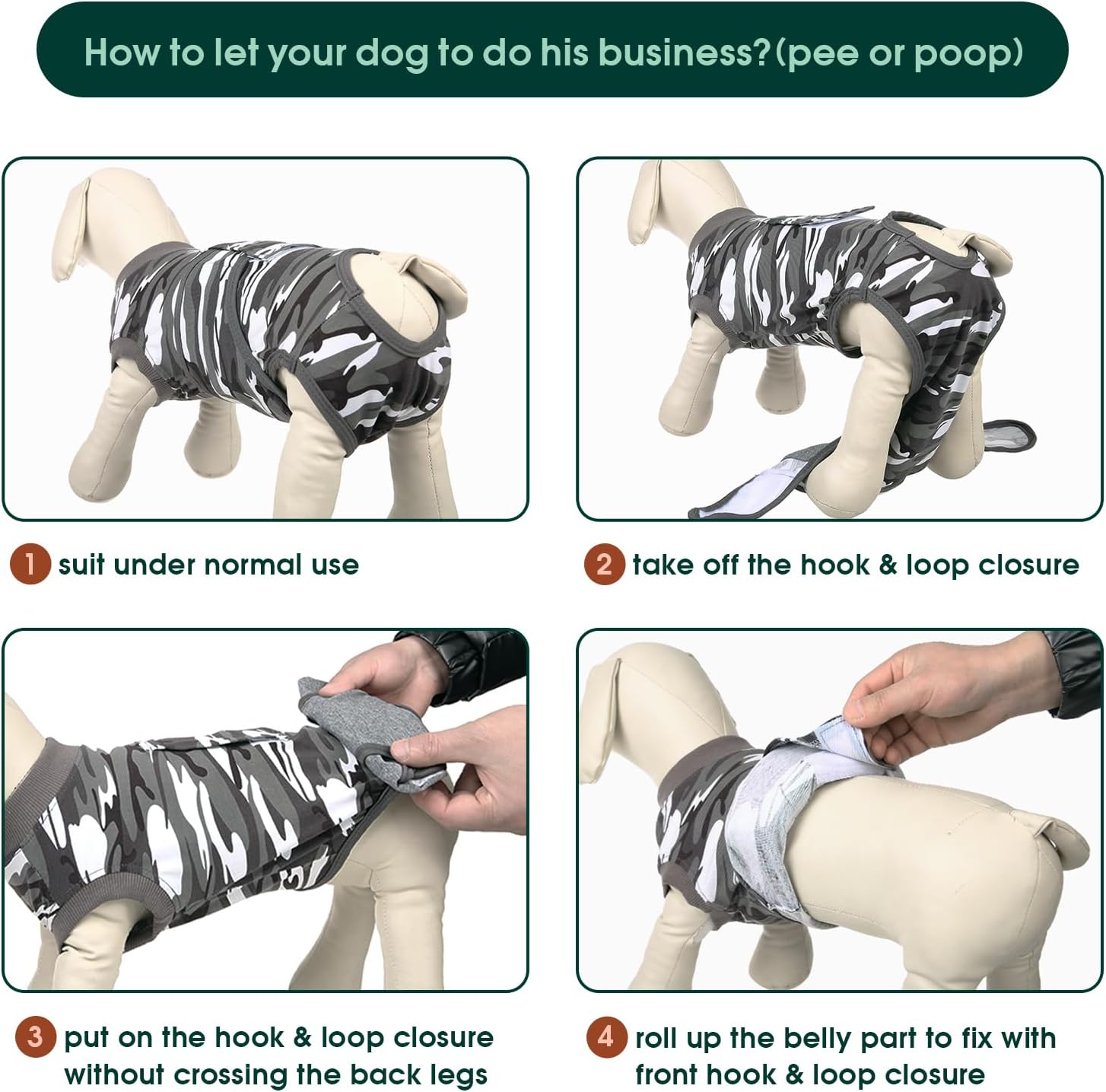 • Easy to Wear: When your dog needs a bathroom break, remove and secure the tapes with provided instructions, aiding wound recovery. Made from machine-washable materials, it's completely safe for your pet