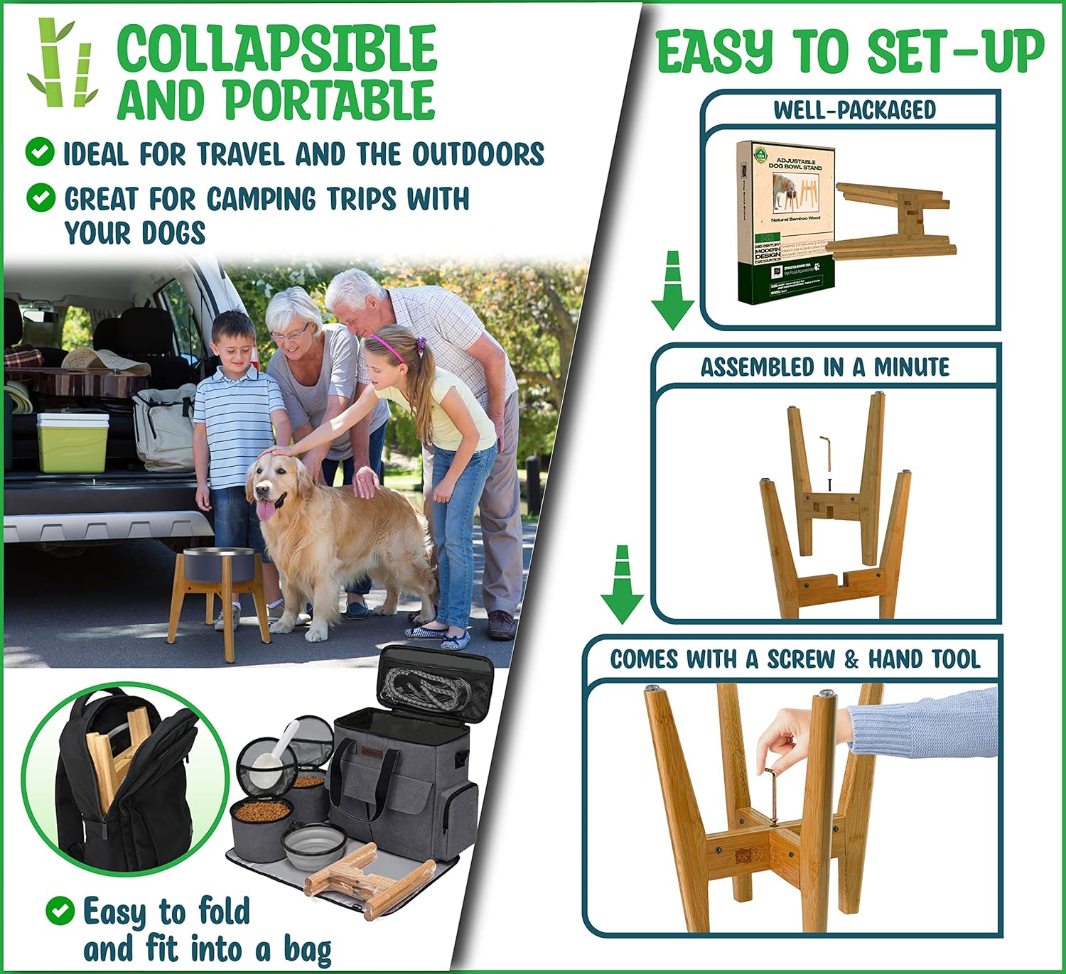 - Portable, Travel-Friendly Design โ The collapsible, easy-to-assemble design fits neatly into luggage or car compartments, making it ideal for camping, trips, or visits to pet training grounds. This dog bowl stand is perfect for on-the-go pet owners.
