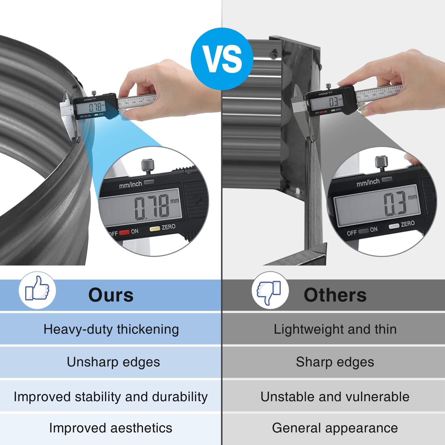• Double thickness: The average thickness of this galvanized planter galvanized sheet reaches 0.78mm, and the thickest part can reach 1.56mm, which is extremely stable. Compared with the ordinary rectangular elevated garden bed with a thickness of 0.3mm, it will be the right choice for you. buy it! ! !