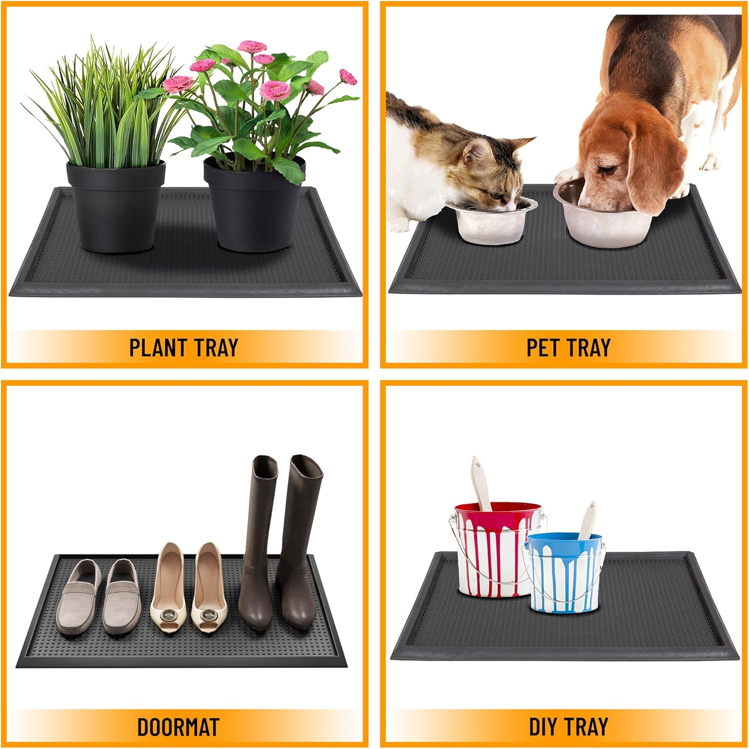 • [RECOMMENDED USE]: This multipurpose tray can be utilized as a doormat, boot tray, mud mat for shoes, potty training pad for your puppy, litter catcher under your litter box, pet feeding mat, and scratcher mat for your kitten. Perfect for indoor or outdoor areas such as the entryway, doorway, patio, garage, mud room, deck, basement, kitchen, sunroom, or porch.
