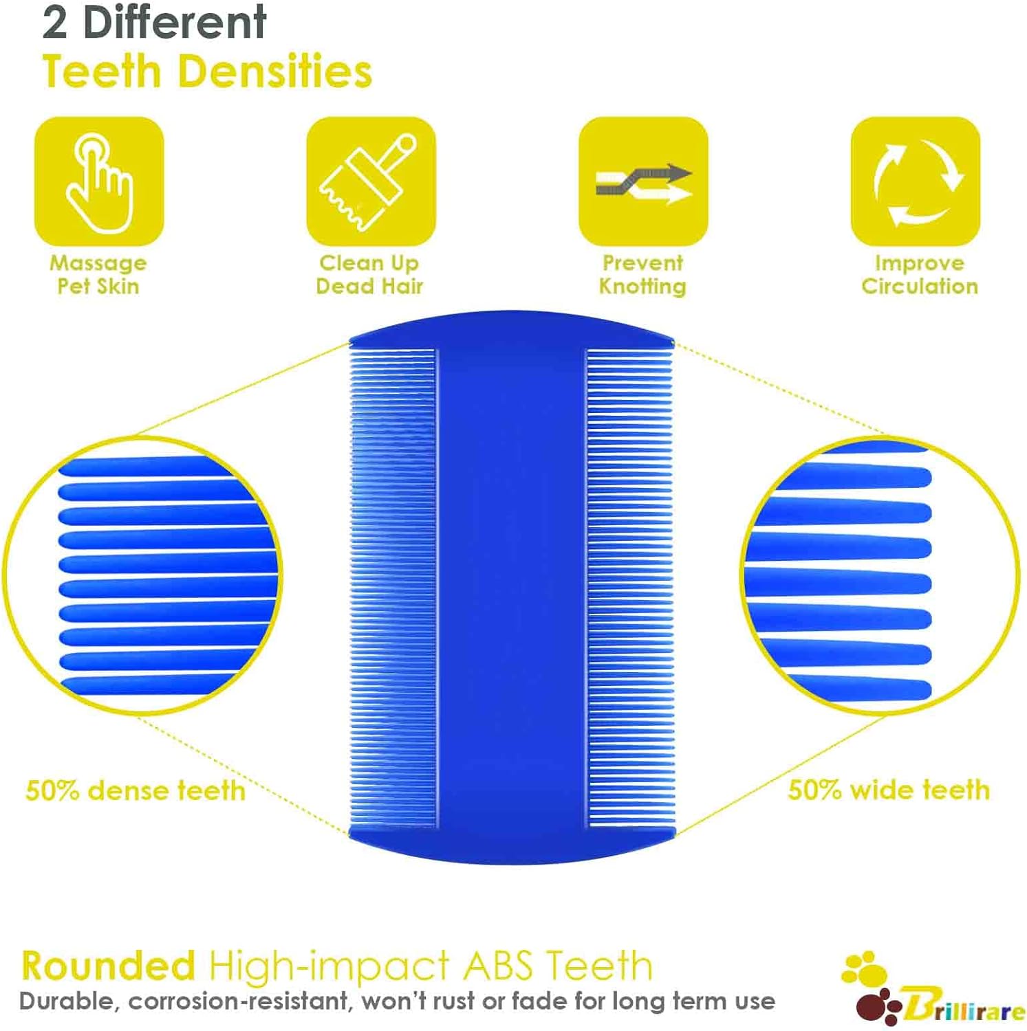 • THOUGHTFUL SET: Our pet grooming comb set includes 4 combs, 1 tooth comb, 1 double sides lice comb, 1 long-needle & 1 short-needle comb to meet different needs. Perfect for straightening out the knotted tangles hair, as well as finishing and fluffing