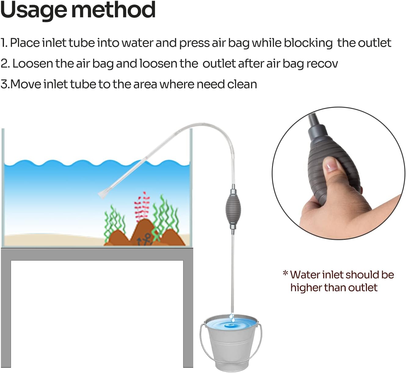 • Included Components : siphon gravel cleaner, removable mesh screen, instruction manual