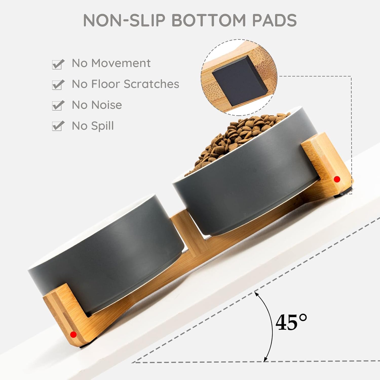 • [Double Bowl Design]:One dog bowl for food and one for water, Each ceramic cat bowl has a Unique wooden stand, raising the dishes closer to your pet for more comfortable eating