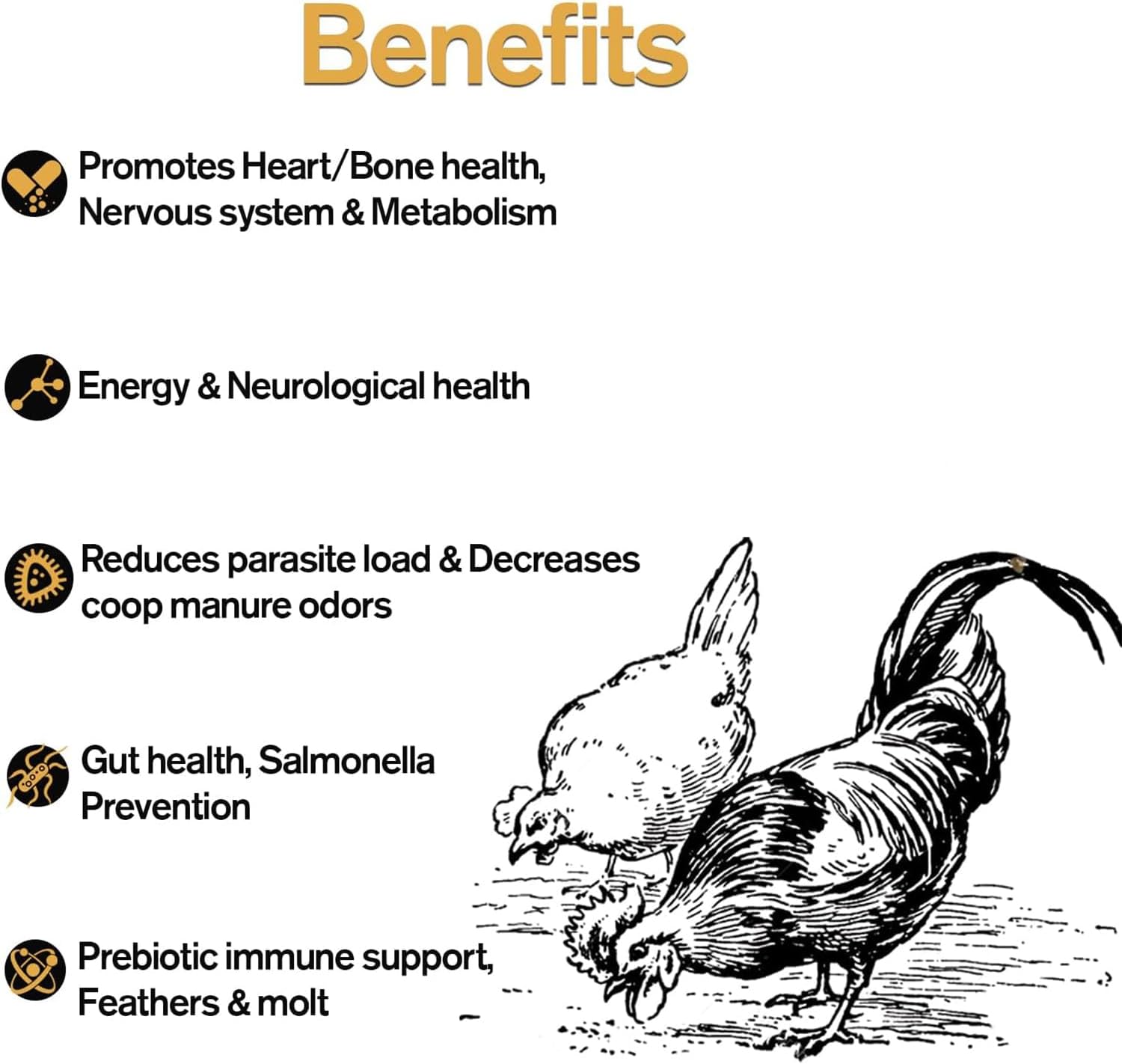 • 𝗕𝗼𝗼𝘀𝘁𝘀 𝗜𝗺𝗺𝘂𝗻𝗲 𝗦𝘆𝘀𝘁𝗲𝗺 & 𝗜𝗺𝗽𝗿𝗼𝘃𝗲𝘀 𝗛𝗲𝗮𝗹𝘁𝗵 - High protein, fiber, and natural vitamins will assist birds maintain their normal physiological processes. Will boost the immune system, promote egg laying and quality, and aid in healthier feathers.