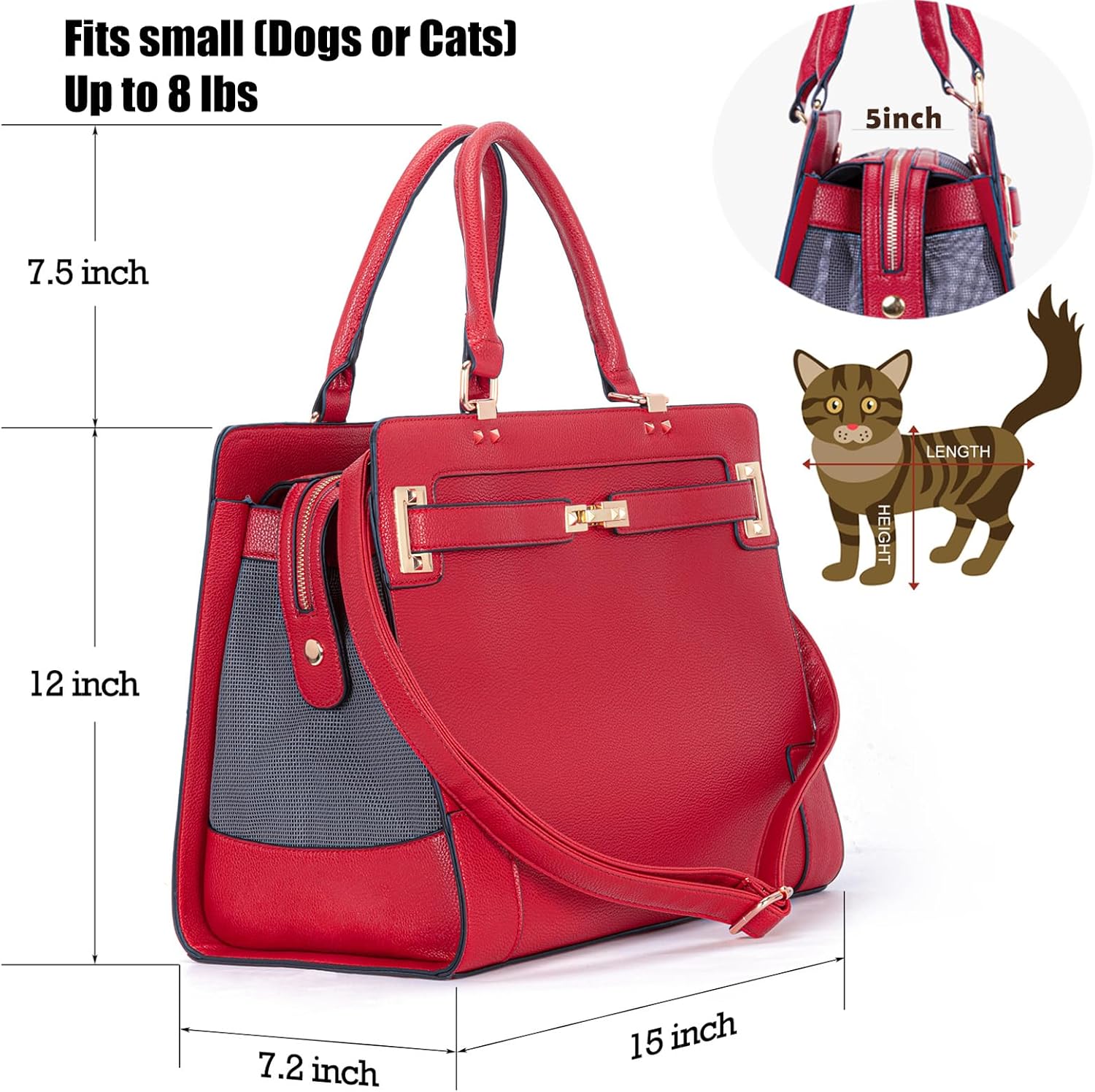 • 🐶[ Specification ] Size:40cm x 28cm x 18cm/15.7” x 11” x 7”, This pet carrier bag can fits almost small pets (dogs, cats, rabbit, etc) up to 8 lbs.