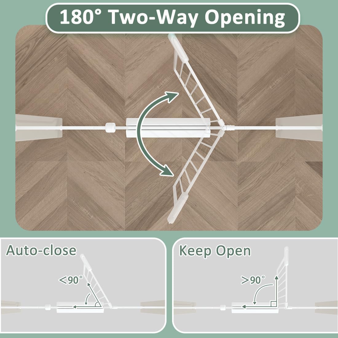 • 【BABY GATE WITH DOOR】 - The door can swing in both directions. Besides,the door of our baby gate has auto-close and auto-lock function. You don't need to worry about forgetting to close the door,it will auto-close when opens less than 90 degrees,You can open the door just with one hand.