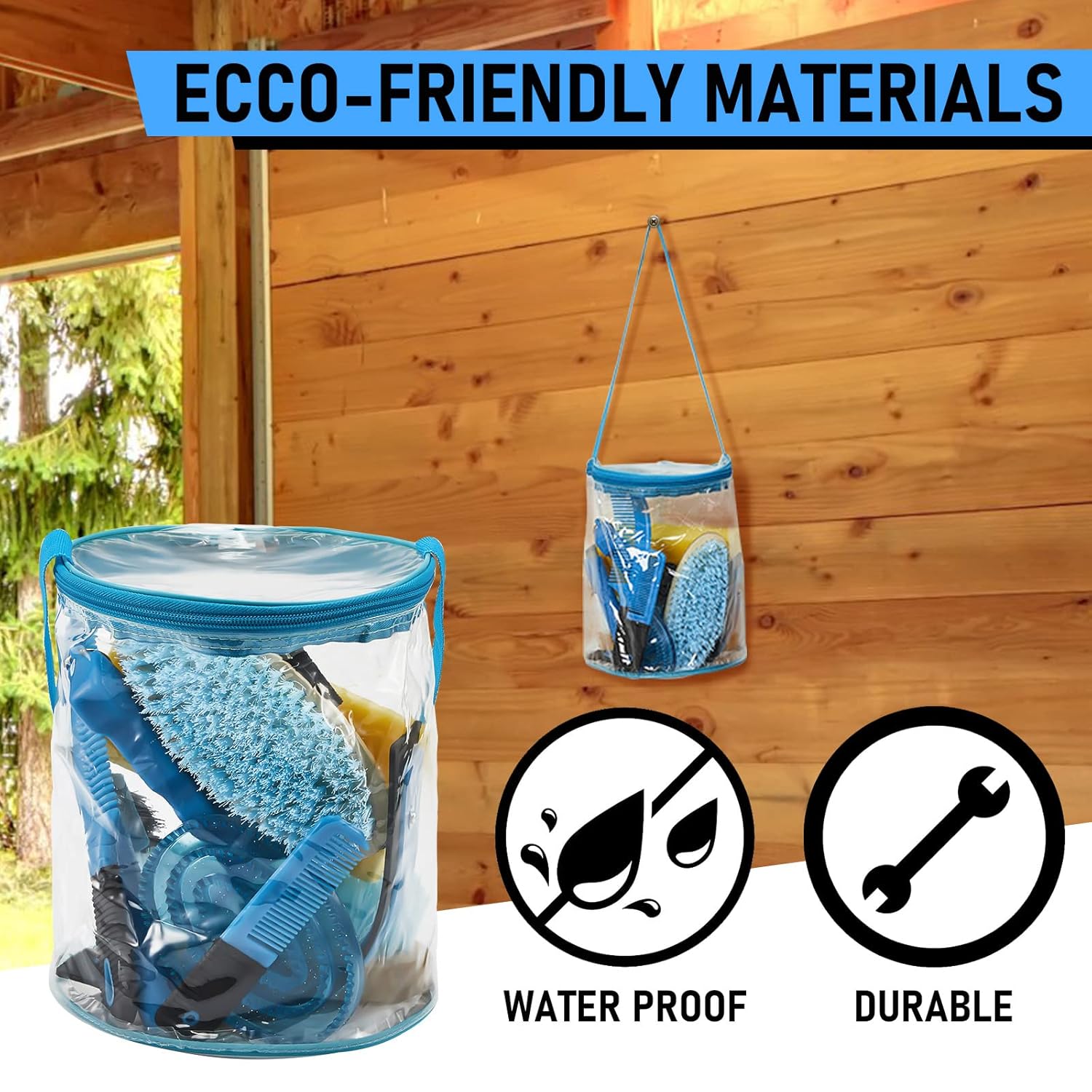 9 Pieces Horse Grooming Kit Tack Room Supplies Set with Organizer Tote Bag, Oval Massage Curry, Hard and Soft Brush, Hoof Pick, Sweat Scraper, Bathing Sponge, Combs for Horse Riders Beginners (Blue)