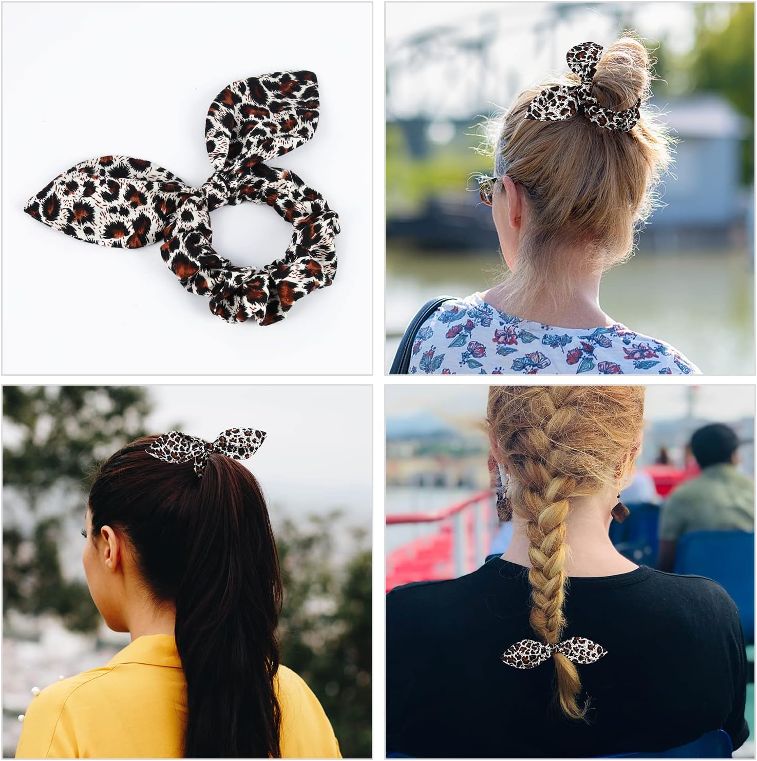 • Square Leopard Dog Bandanas Size- 19.2’’*19.2’’. The adjustable dog bandanas girls fit dog neck size up to 21.2’’ (54cm). You can roll the cute dog scarfs a couple of times to fit your dog & cat if it’s too large for your big dog. Please measure your dog’s neck before buying. Leopard bow scrunchie is one size fits all.