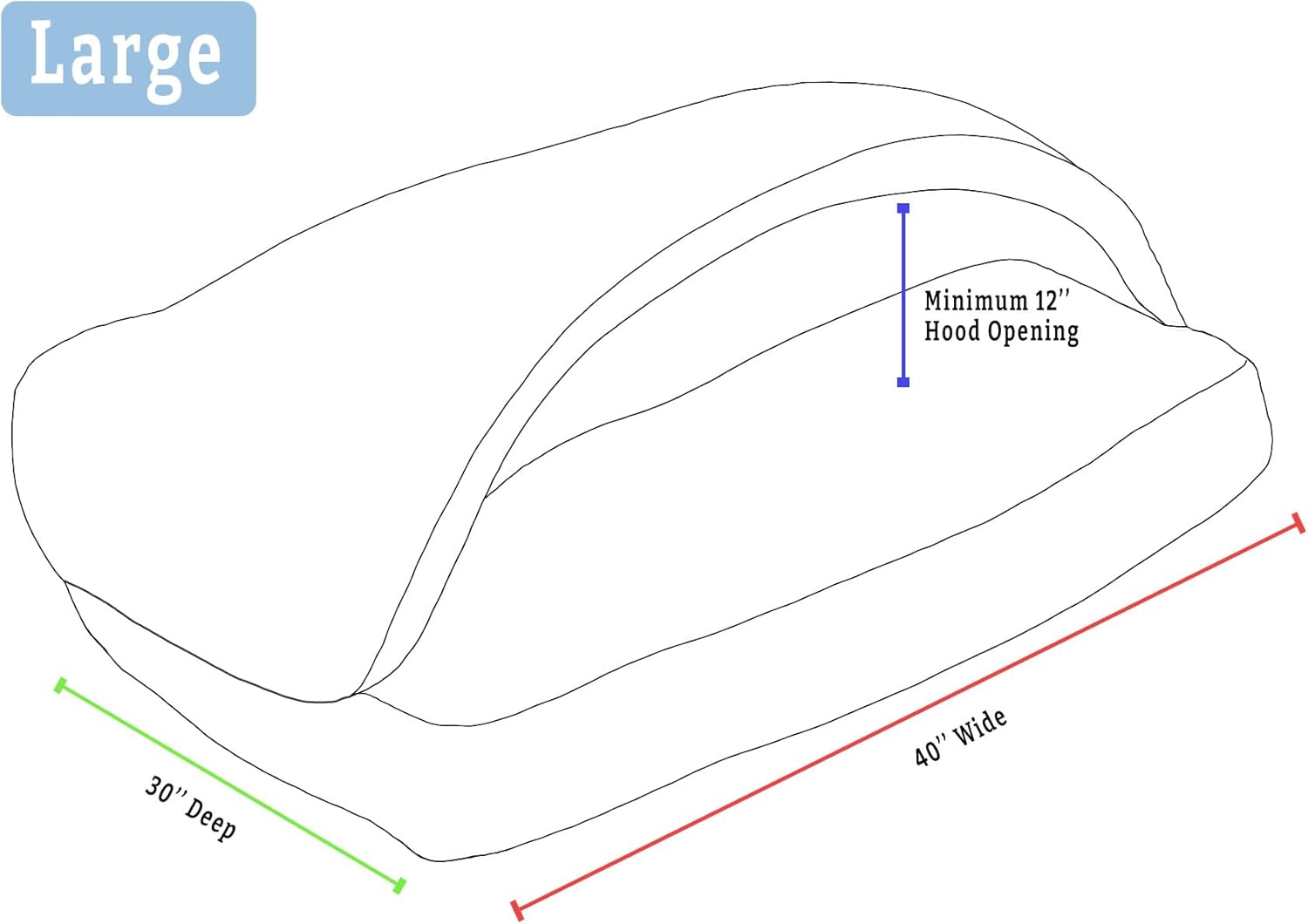 - SIZING: This Large Rectangle Cozy Cave measures 30” x 40” and has an approximate hood opening height of at least 12”. A thin removable plastic tube keeps the hood open for easy entry or exit and can be removed through the small hole at the corner of the hood for a looser, blanket-like structure. This size Large provides space for mid to large-sized breeds while creating a snug, enveloping feel.