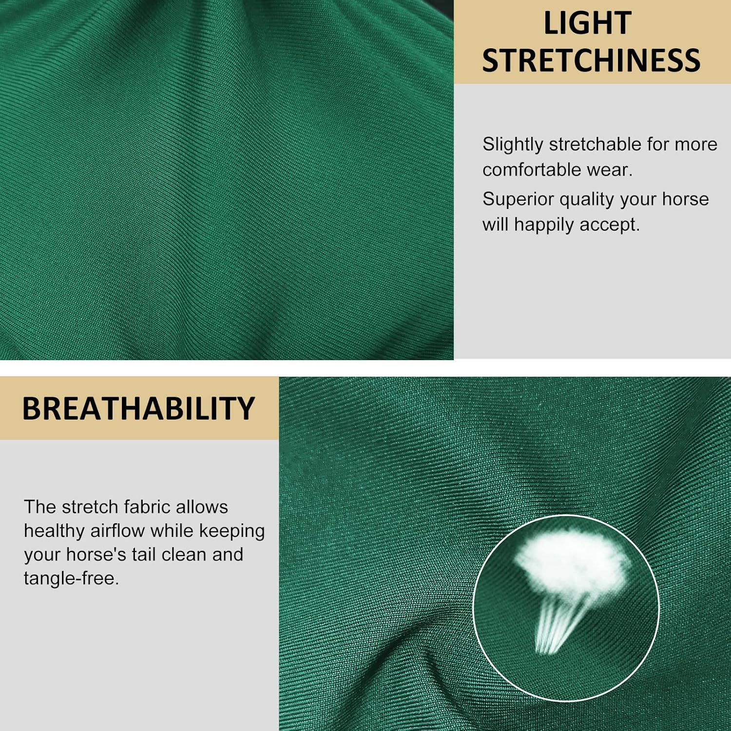 Harrison Howard Stretchy Tail Bag Breathable Horse Tail Guard Slip on Design Protect Horse Tail 2 Strand Closure Straps Keep Tail Clean & Protected 22" L Length Makes Grooming Easy-Deep Green