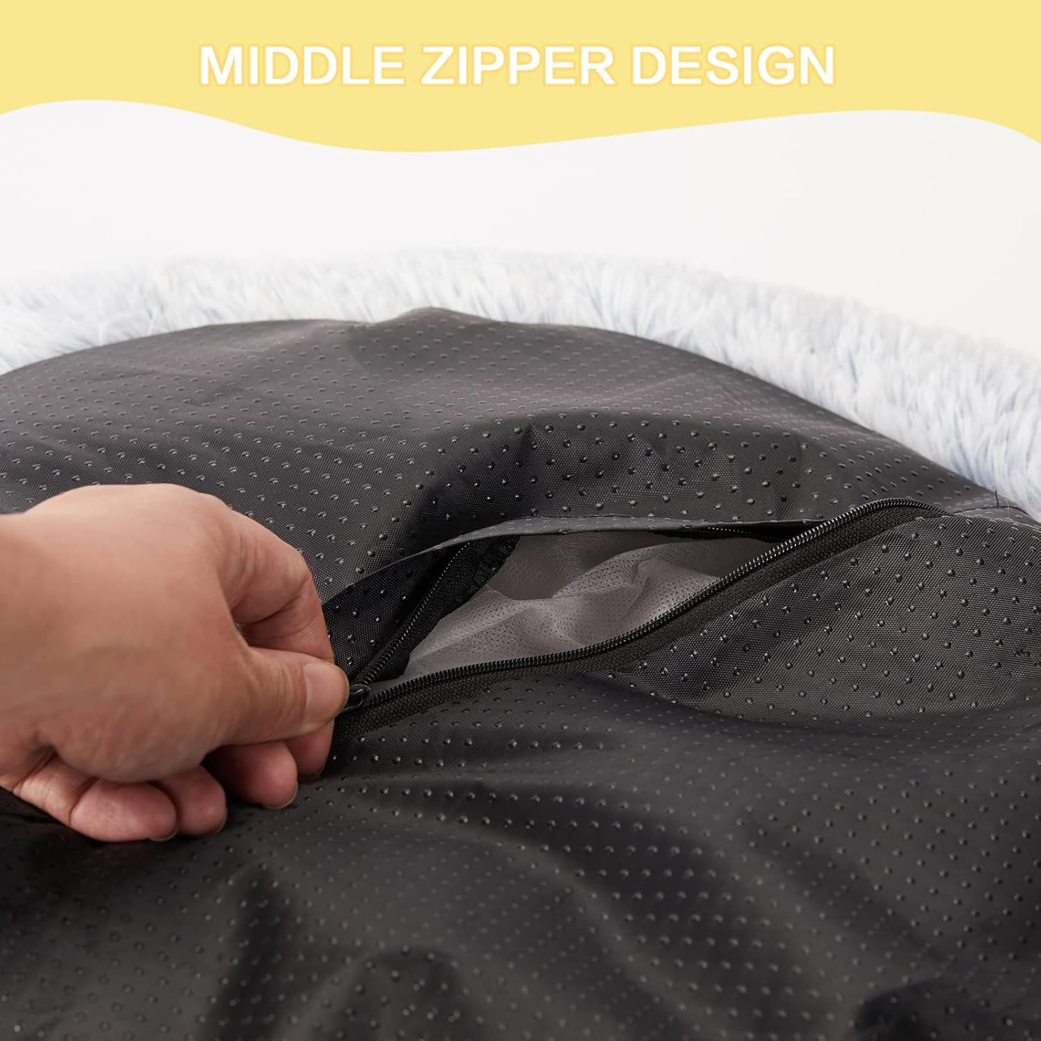 • [Easy Care] This plush dog bed is equiped with a middle zipper on the bottom. The central cushion is removable for easy cleaning. Tumble dry at low temperature after washing. Do not bleach. Please shake and pat the fuzzy dog bed to make completely fluffy before use.