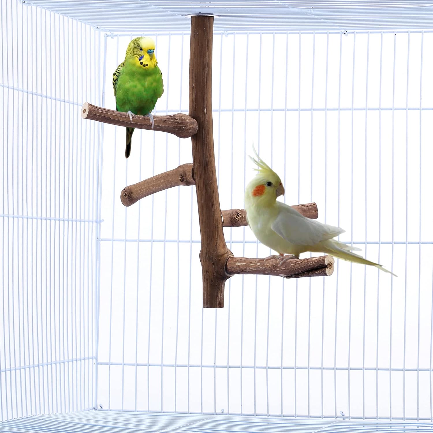 • DESIGN: The birdcage branch perches provide a habitat for the parrot to stand or rest in the cage. It allows 3-4 birds to play at the same time, your birds can play and get better communication with each other like wild birds. Perch toy also provides your pet with a nice and cozy place to exercise, relieves boredom and increases activity level.