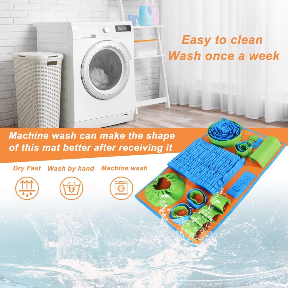 • SAFETY MATERIALS - The main material of the foraging mat is felt cloth, which is safety but not chewproof. When you receive this felt snuffle mat, machine wash it once to make the shape as good as the picture