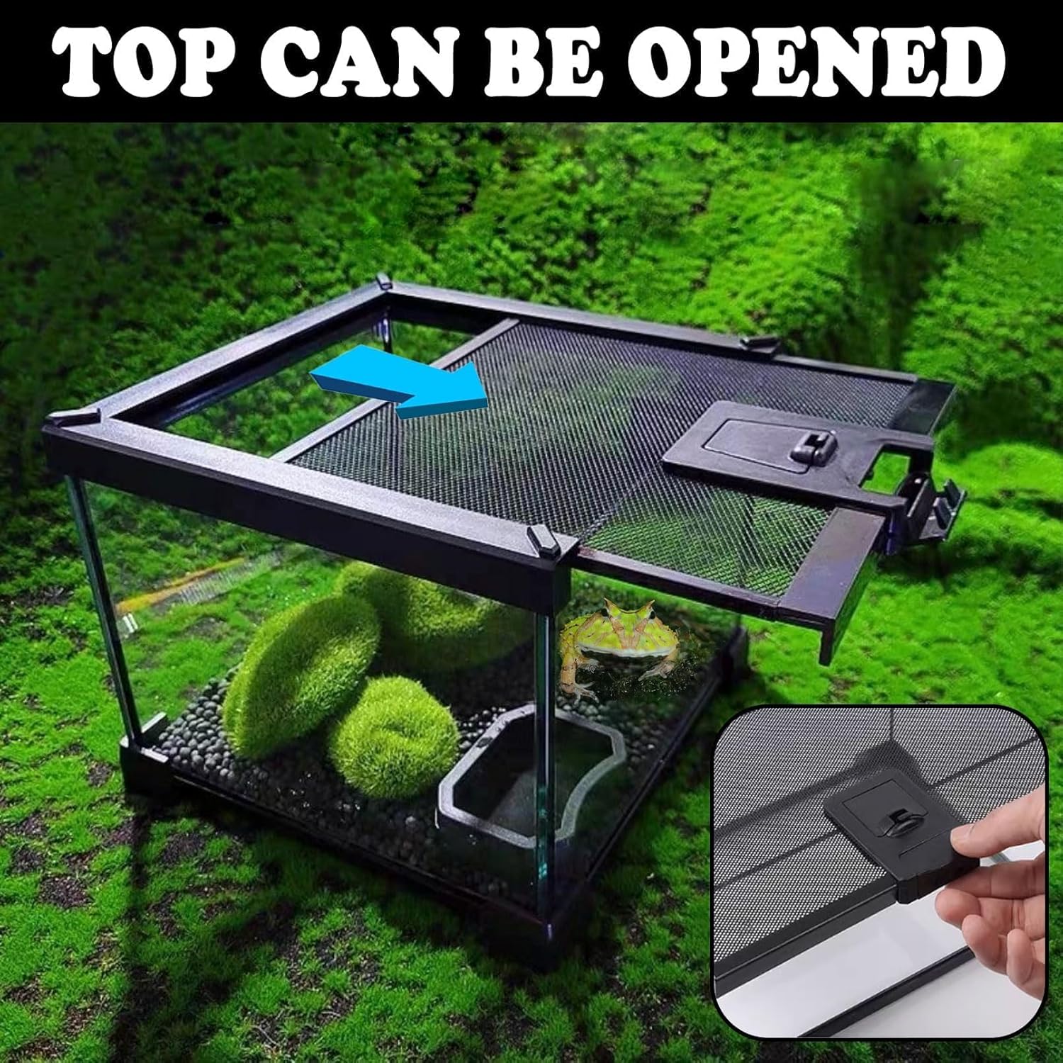 • ใ€๐ŸฆŽReptile Glass Tankใ€‘This aquarium is made of high quality glass material with 360ยฐ panoramic view, allowing you to see your critter's activity and physical condition from all angles, ideal habitat for small reptiles. This glass tank can also be filled with water if needed.