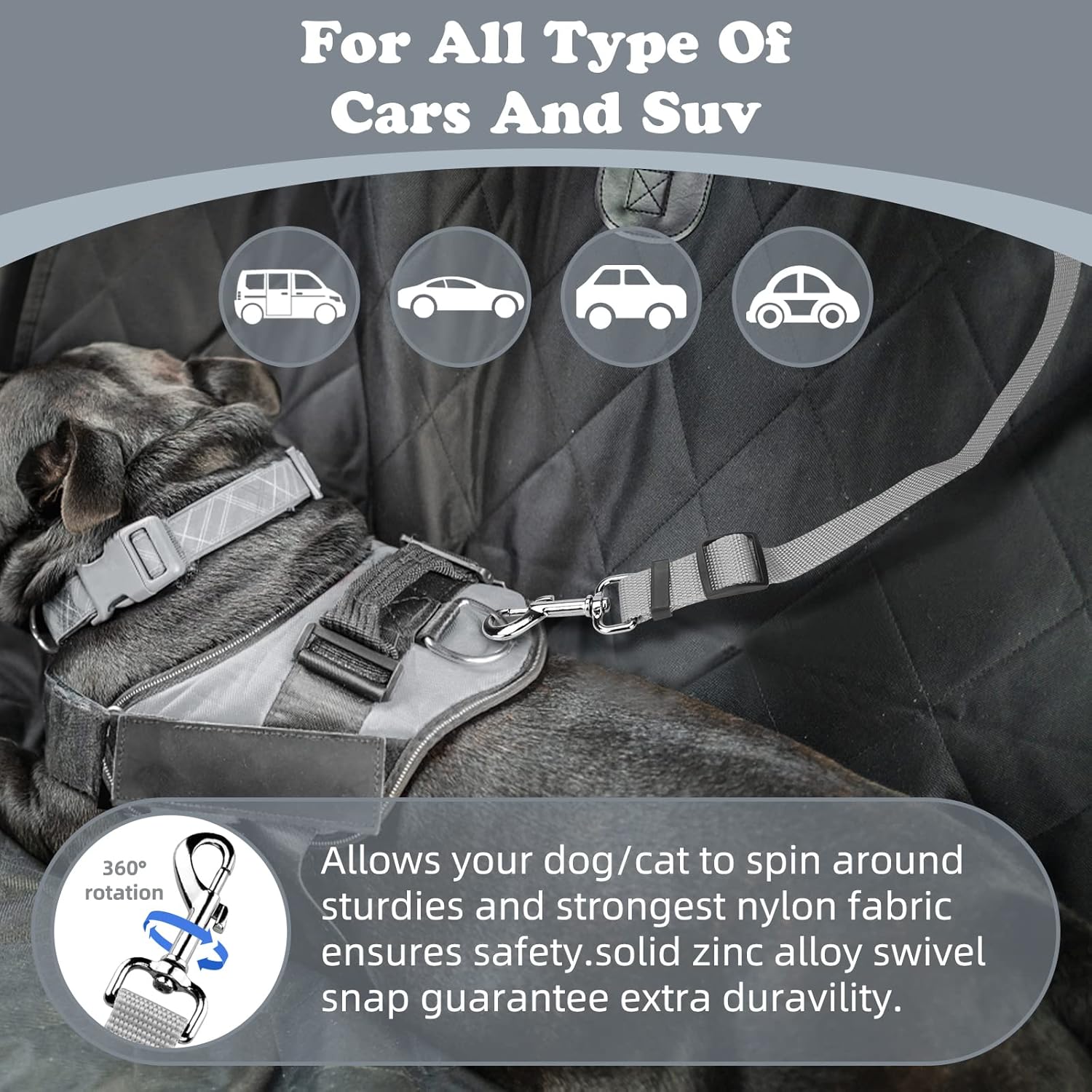 • HIGH QUALITY: Made of high quality nylon fabric to ensure safety, features the solid zinc alloy swivel snap and quality buckles, the pet car seat belt ensures the most safest traveling for your pet, and provides a most relaxing driving experience for you.