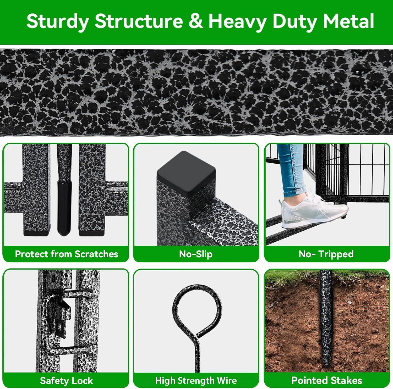 • 【Safe Enclosed & Expandable Area】The heavy-duty dog pen is sturdy and durable, pet fence provides a safe enclosed area for your pups play, run around and get the exercise they need, each panel is separate, which can be combined repeatedly for larger square footage, this temp fencing makes potty and house training much easier