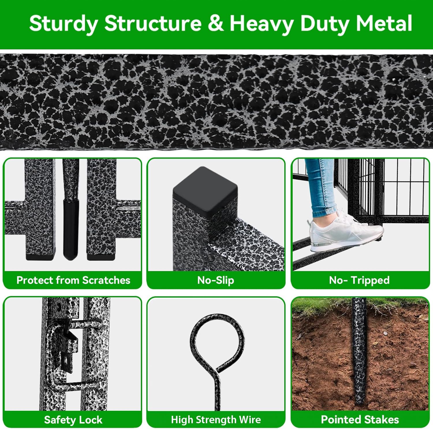 • 【Anti-Rust Coatings Material】Kfvigoho puppy playpen made of heavy-duty metal, sturdy and durable, steel wire smooth and solid, pet dogs couldn't damage or chew it, anti-corrosion coatings and rust-proof process helps panels works well outdoor and extend its life, the indoor and outdoor dog pen great for people with dogs