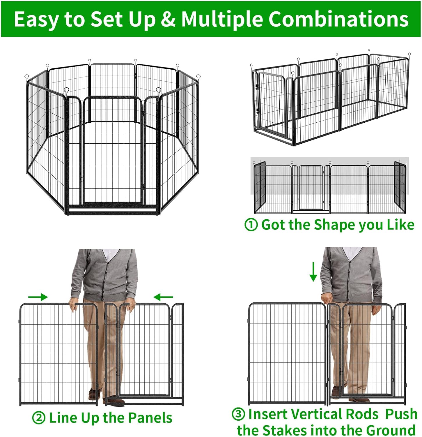 • 【Easy to Set Up & Multiple Combinations】The panels come with individual poles to connect them together, easy to set up or take it down in minutes, dog fence can do multiple combinations and configurations, dog playpen for the yard easily conforms to different shapes according to your garden or room, circle, polygon, irregular, etc