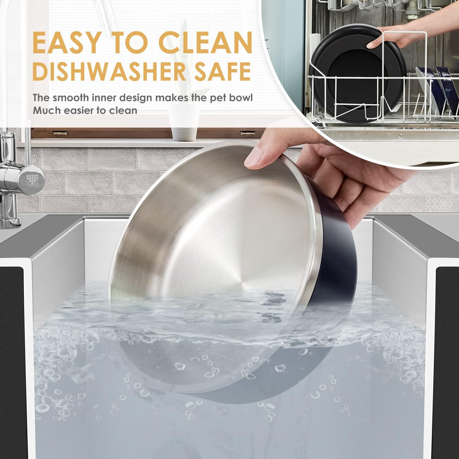 • EASY TO CLEAN-The stainless steel dog water bowl uses polishing technology to create a smooth surface. These crafts can help you easy to clean and wipe. These metal bowls are perfect for dogs, cats, rabbits or other animals.